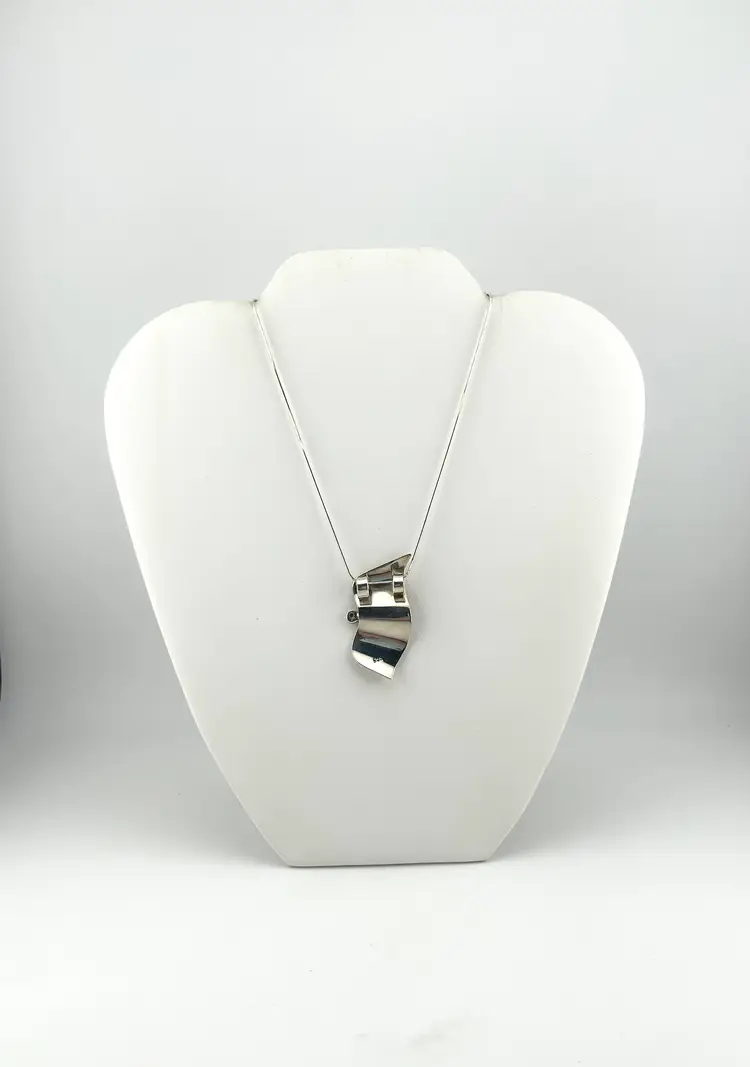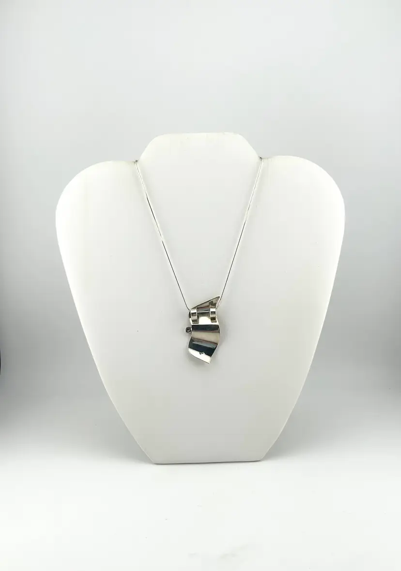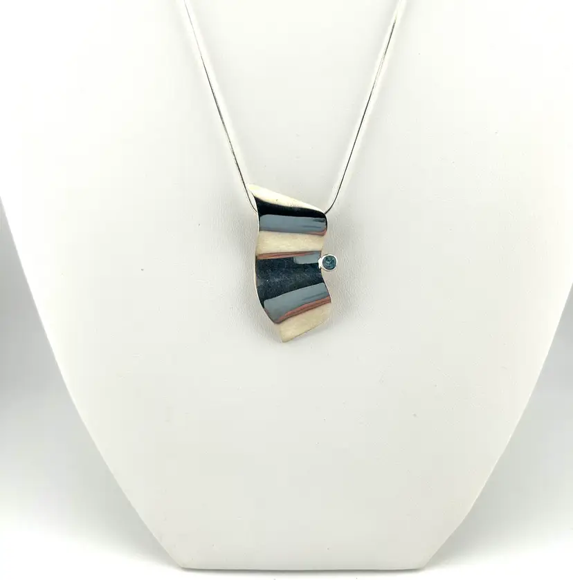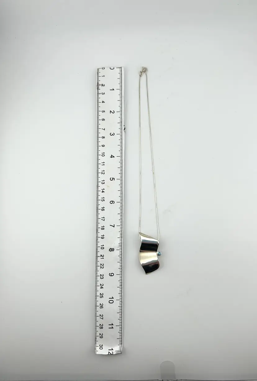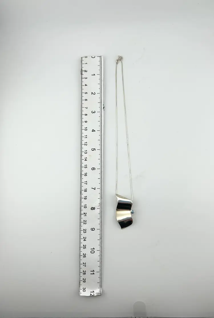 Pendant has blue accent stone possibly glass or CZ. Pendant is 1.75”. Pendant and chain are marked and tested with magnet and acid.