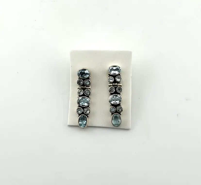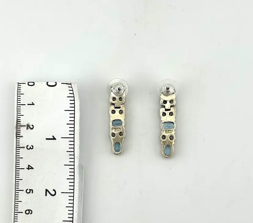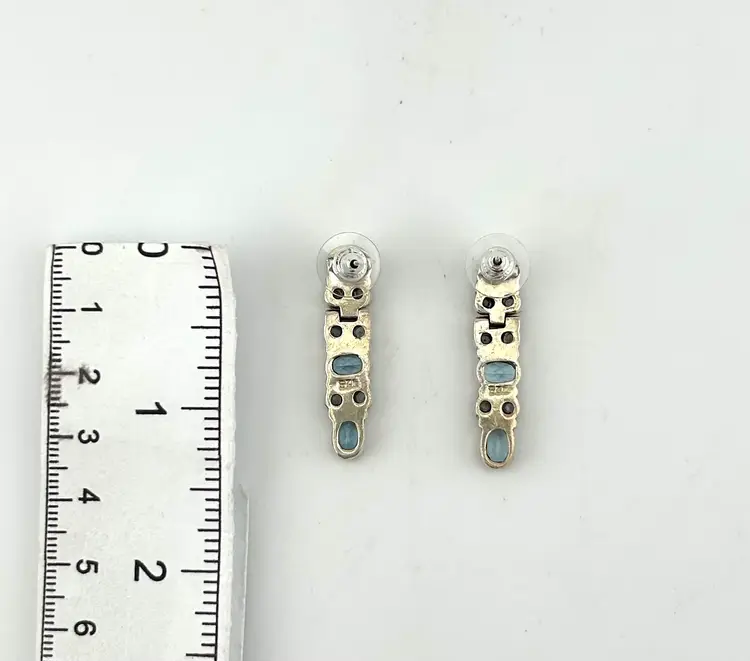 Marked .925 and tested. Note in the bag with the earrings stated the stones are blue topaz. I am not able to test that. The earrings also came to me without backs. I don’t have spare Sterling earring backs so I have replaced them with silver tone ones that I have. If you have a metal allergy you will need to get yourself Sterling backs.