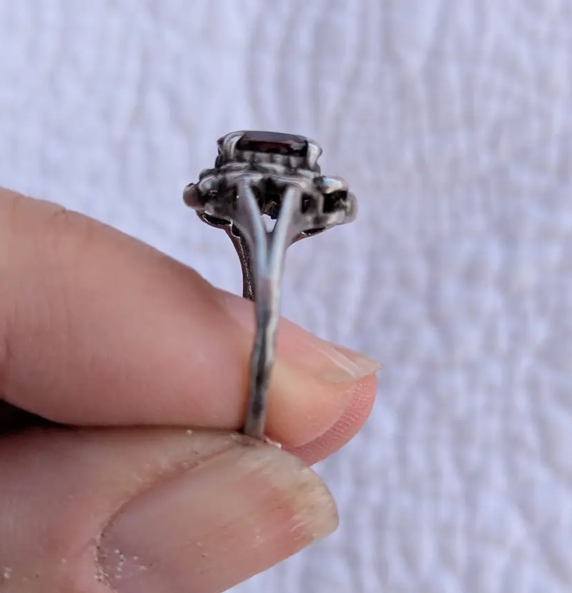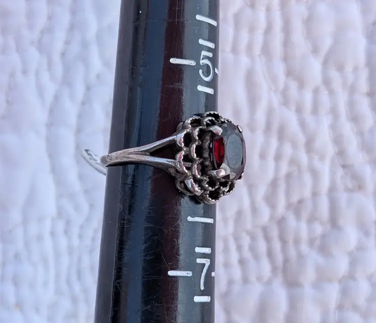 The front face of this ring is 1/2" long. Marked Sterling very faintly inside the band.