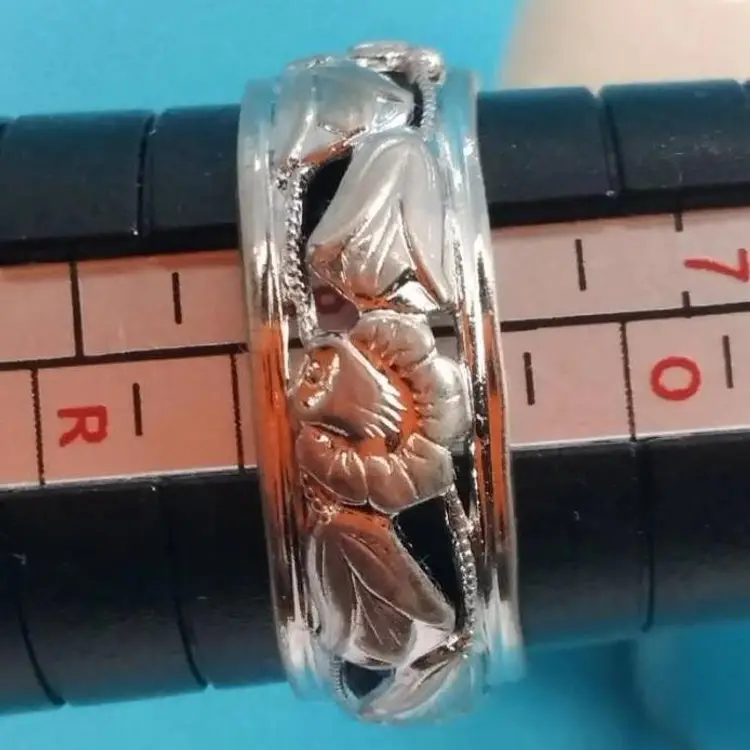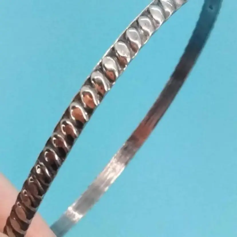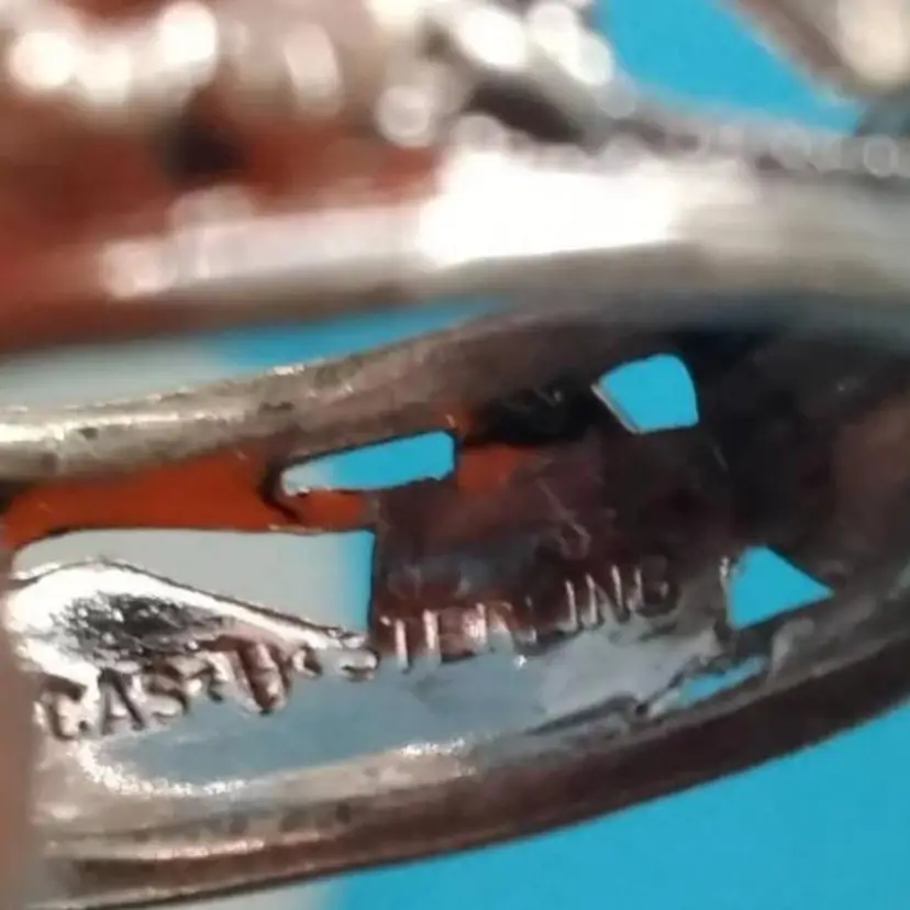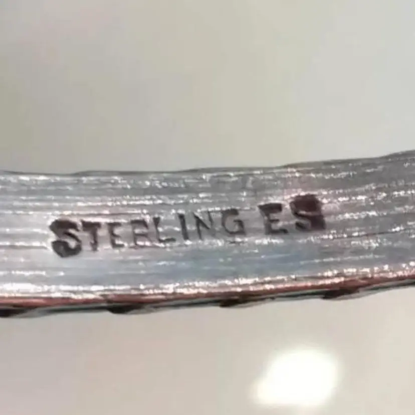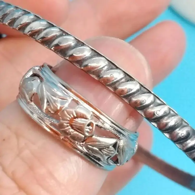 A beautiful vintage set featuring a sterling silver bangle with a textured design and cast sterling ring adorned with intricate floral patterns. Both pieces are in good vintage condition and add a touch of elegance to any outfit.
