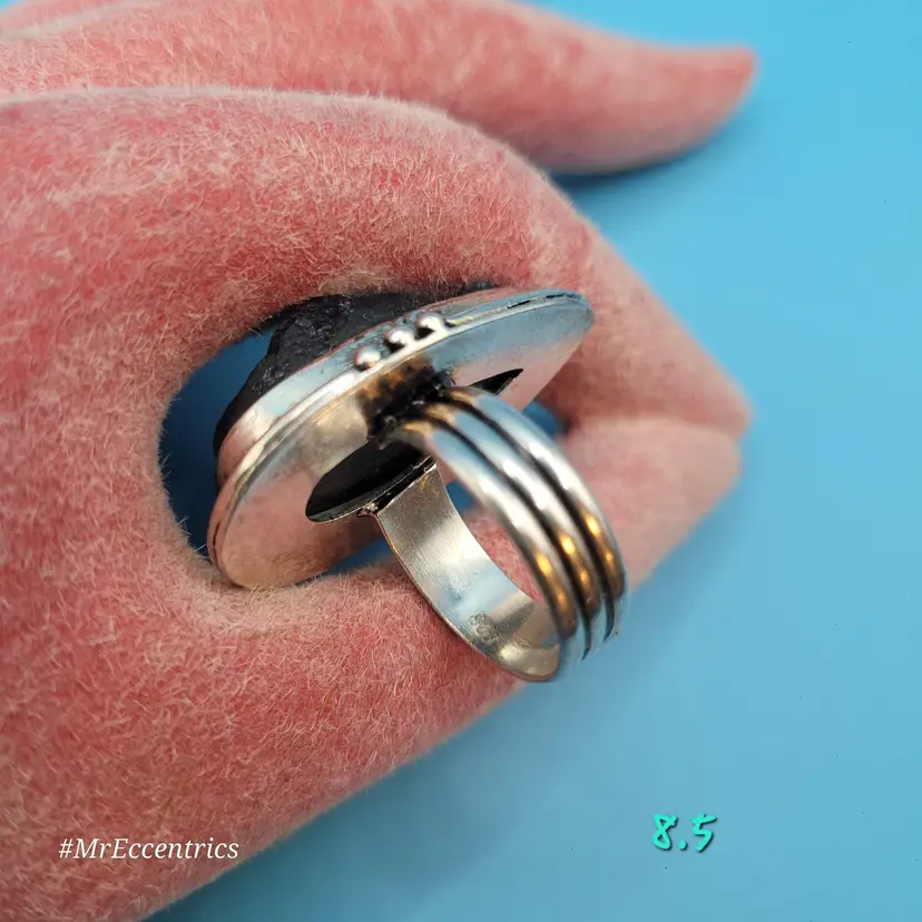 Make a bold statement with this vintage sterling silver ring featuring a mesmerizing stone. Perfect for adding a touch of retro elegance to any outfit. 💝 All items are packaged with care to ensure safe delivery. #nosadmail ✴️ Follow my Facebook page & IG for more curated vintage treasures! ⚡️ #MrEccentrics #vintagecurator #vintagestyle