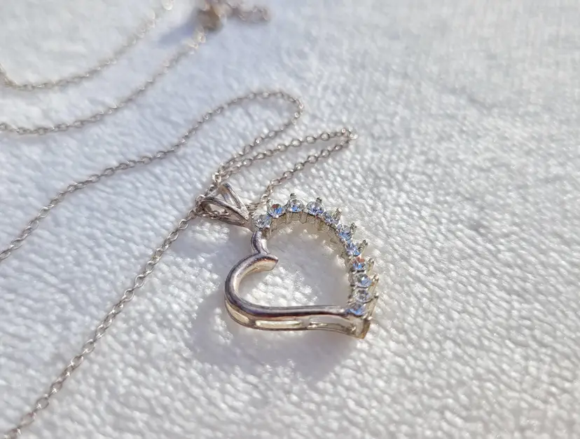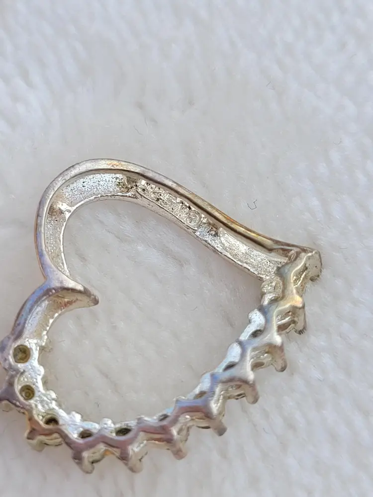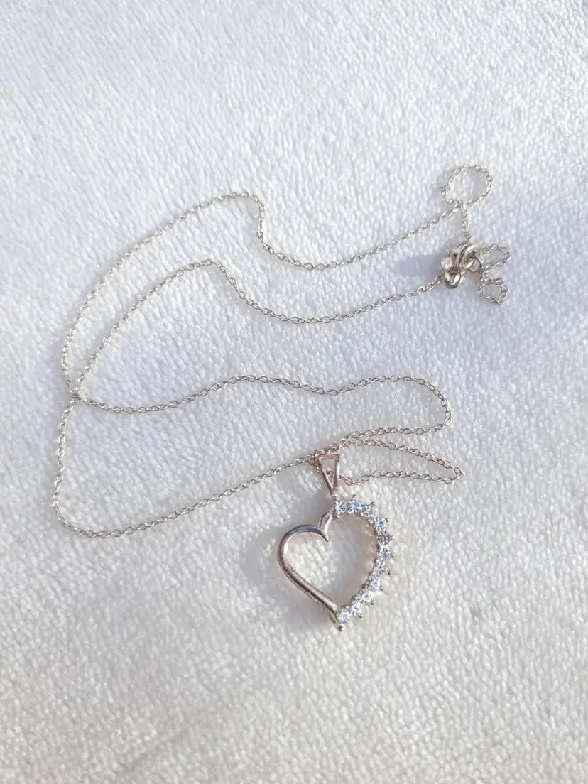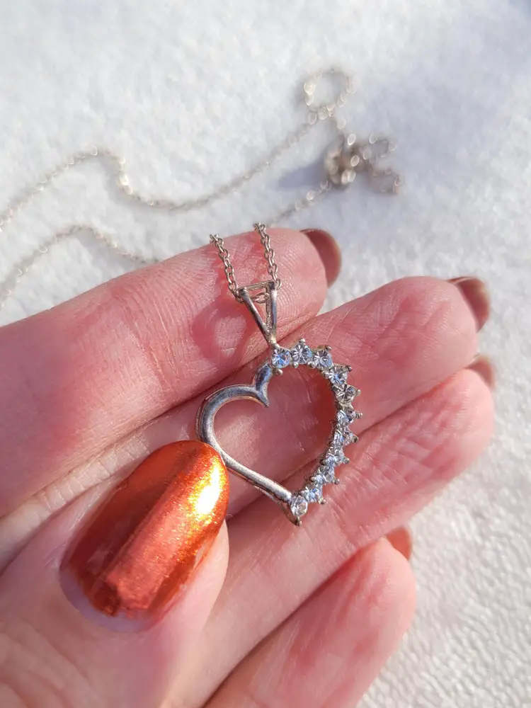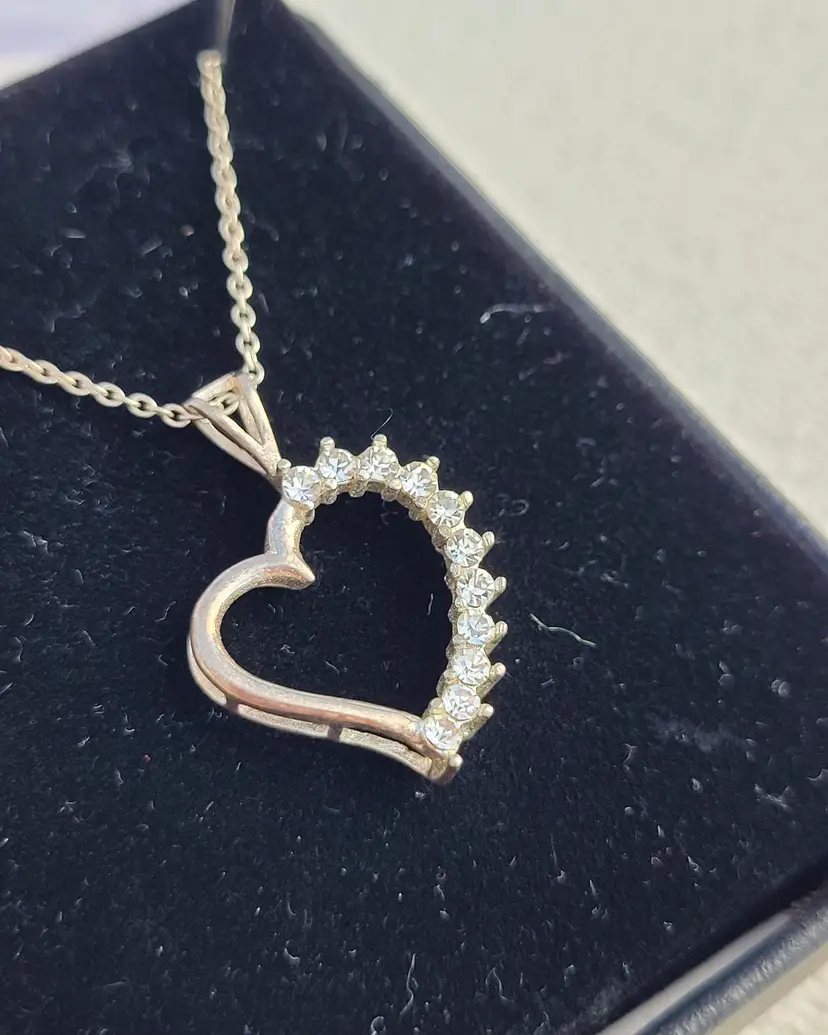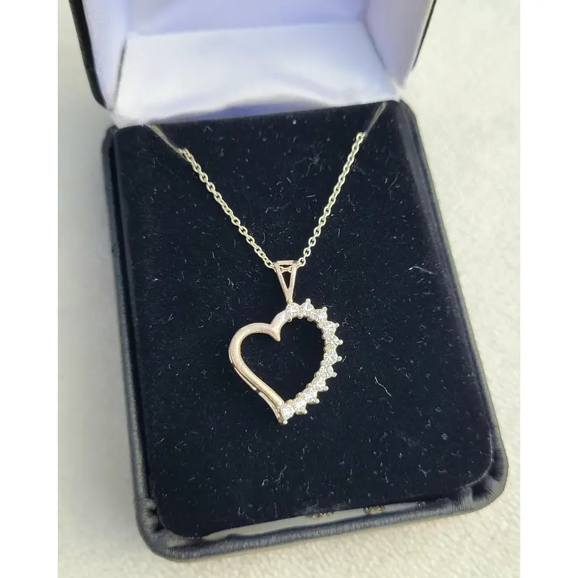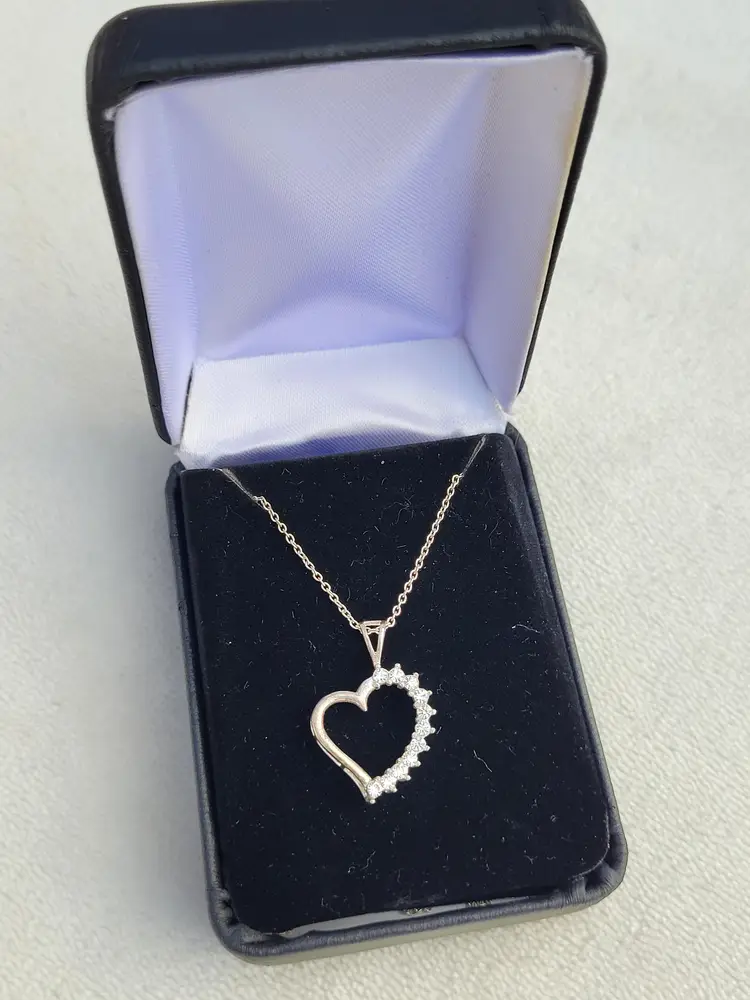 Romantic sparkling heart pendant on an 18" chain, made of pure sterling. In good condition from an estate, circa 1990s/y2k and includes the box shown. Please see pictures for details and measurements.