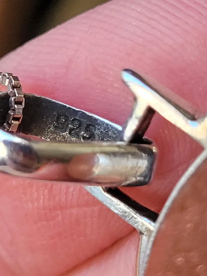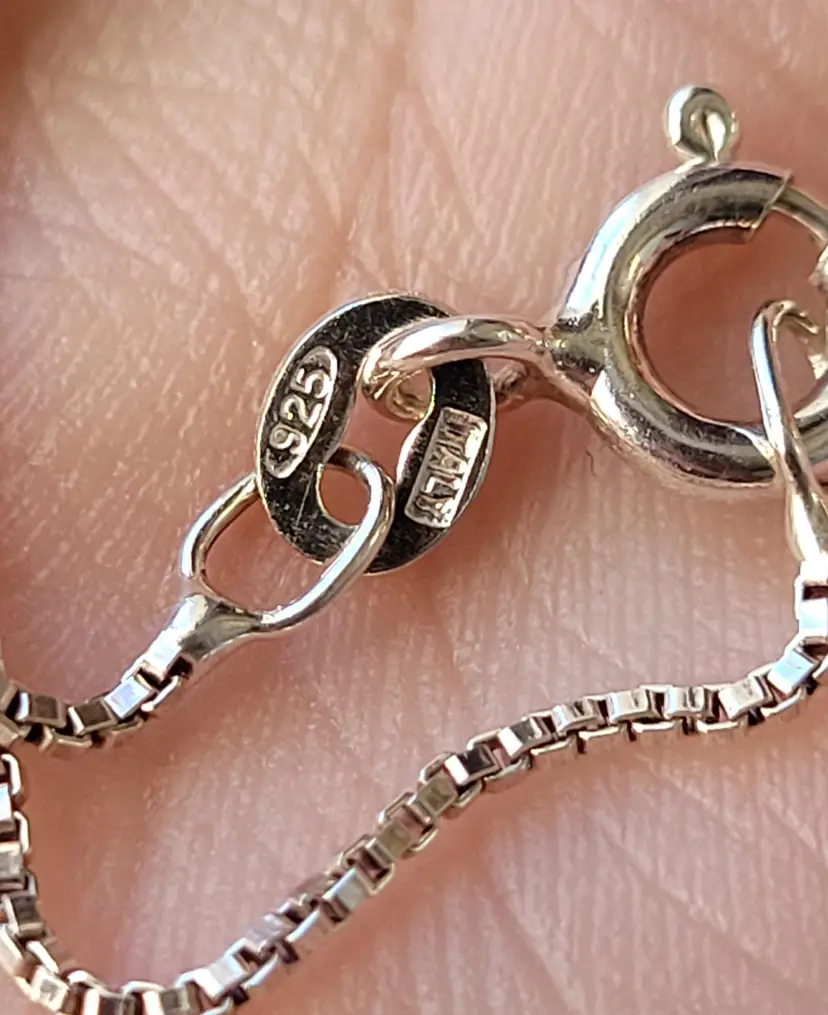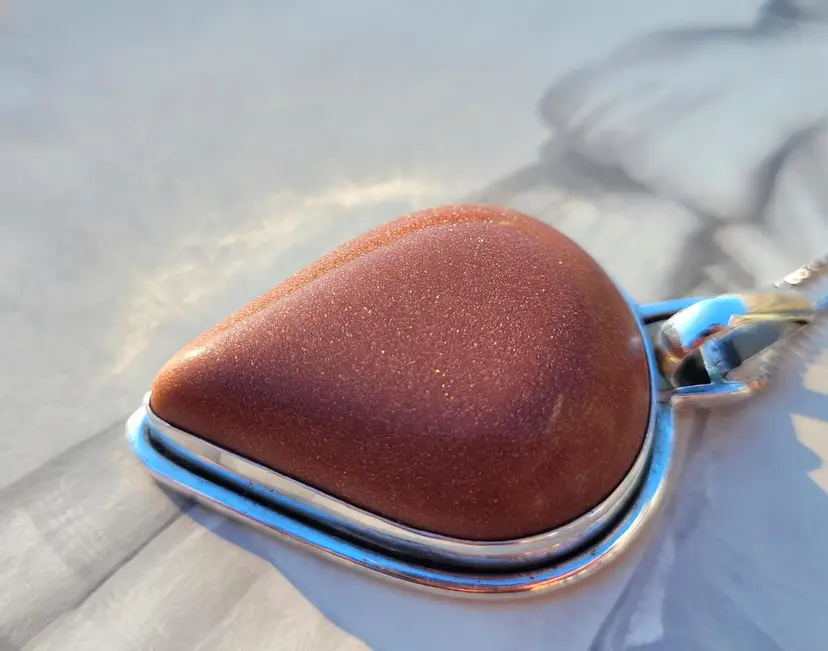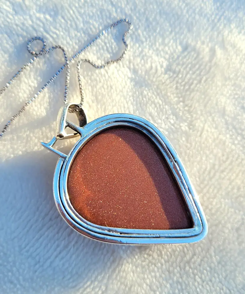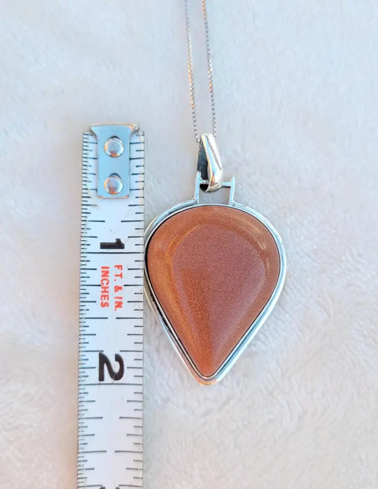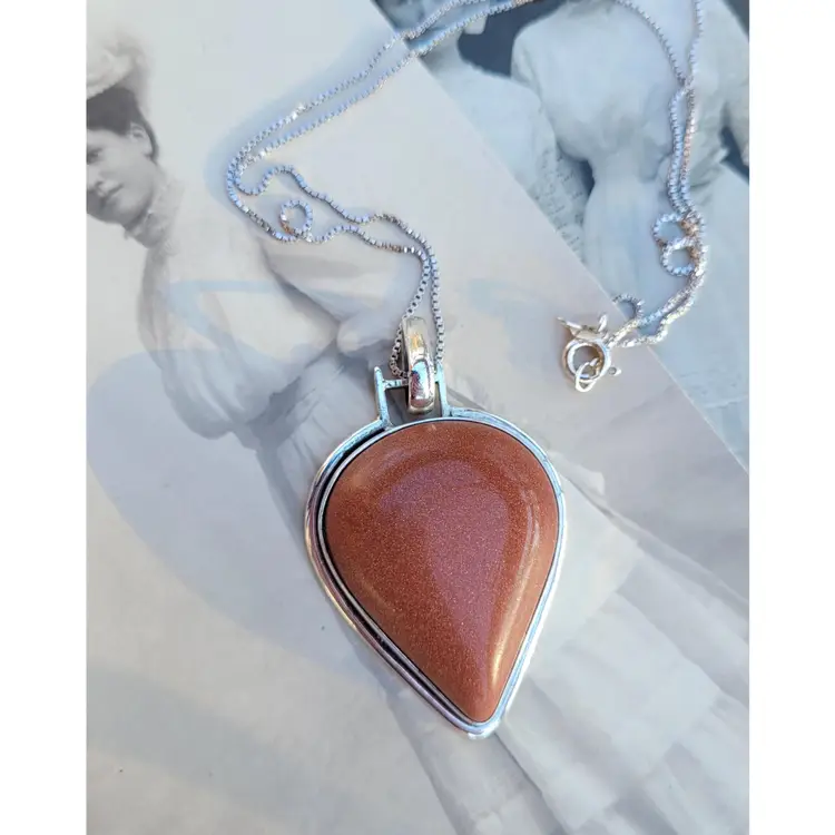 Shimmering goldstone cabachon set in pure sterling silver and on an 18" chain. This is from an estate and circa 1990s, in good condition. Please see pictures for details and measurements.