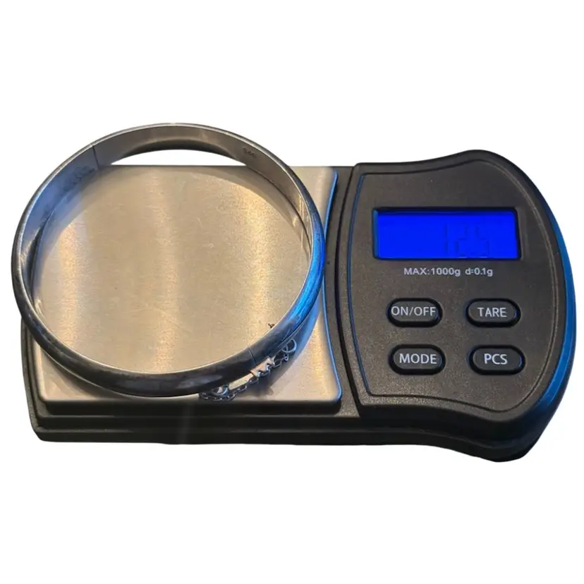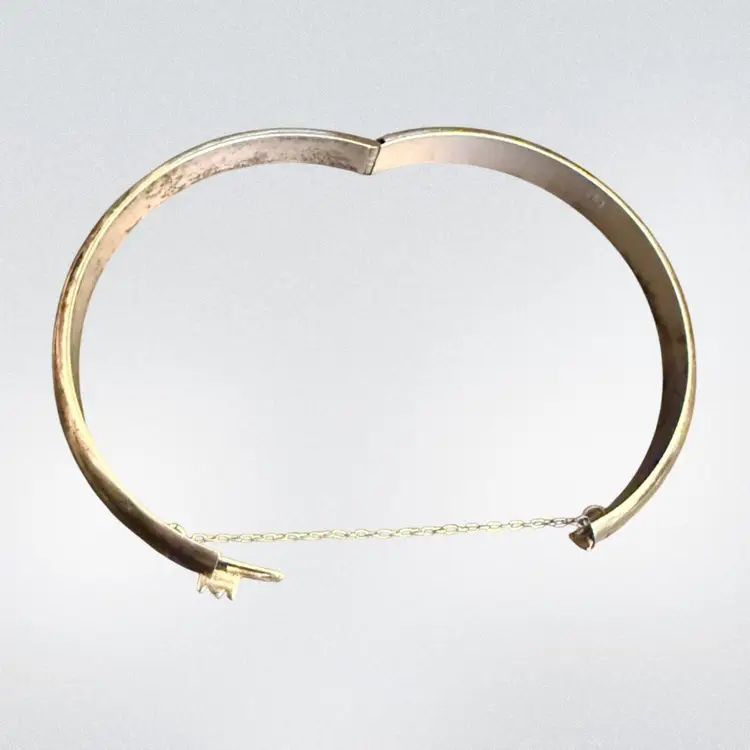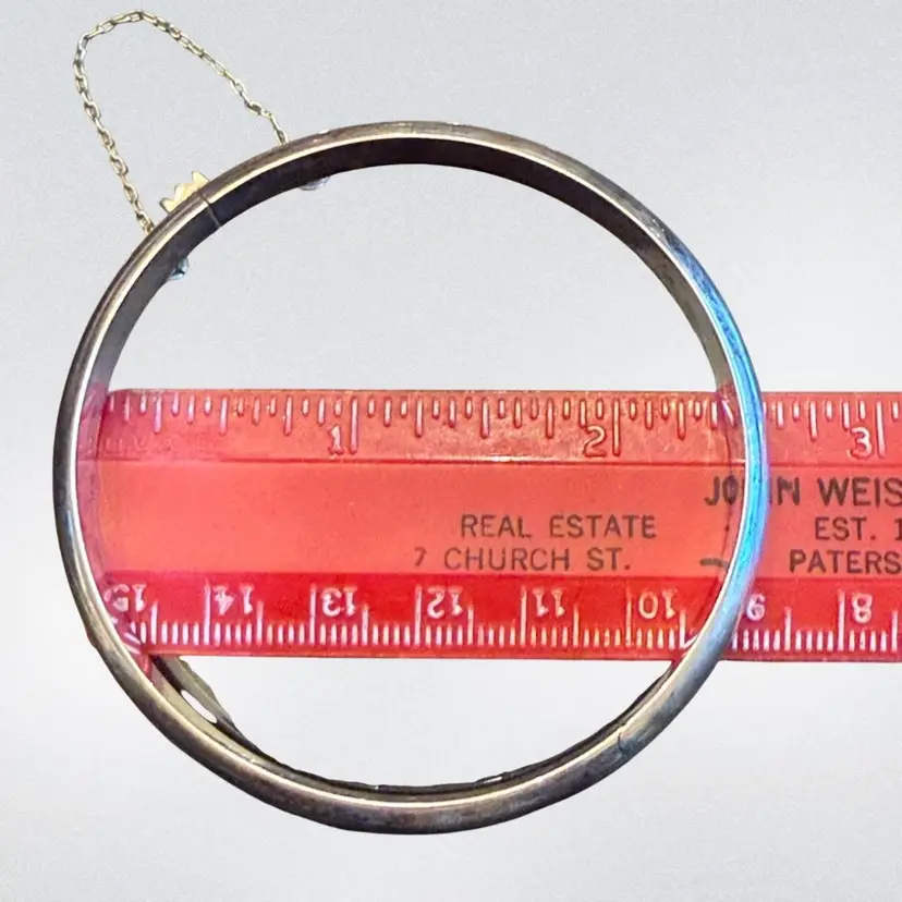 Vintage Sterling Silver Hinged Bangle w/ Safety Chain 2.5” Inner Diameter, 12.5g
