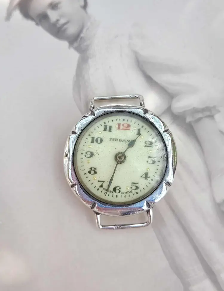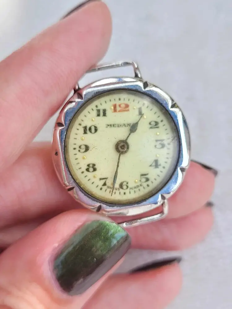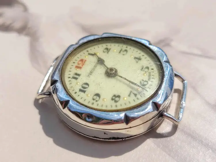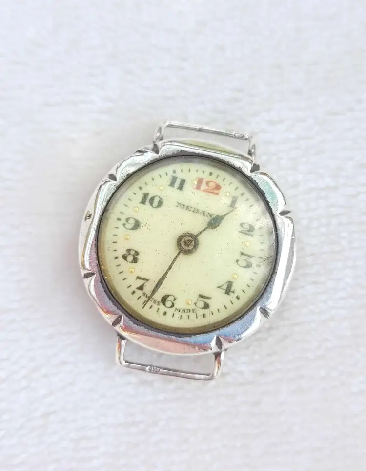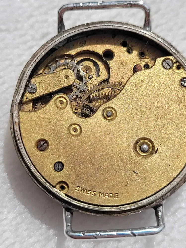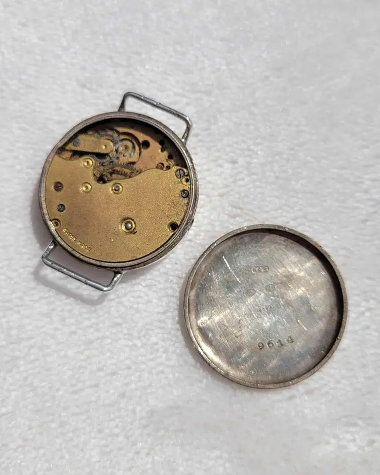 Handsome late deco 1940s mechanical wrist watch, with a solid sterling silver case. This company is associated with Roamer, a nicer UK brand. Aesthetically it is in good condition, but the movement is non- functional and this is being sold for parts or repair. Please see pictures for details and measurements.