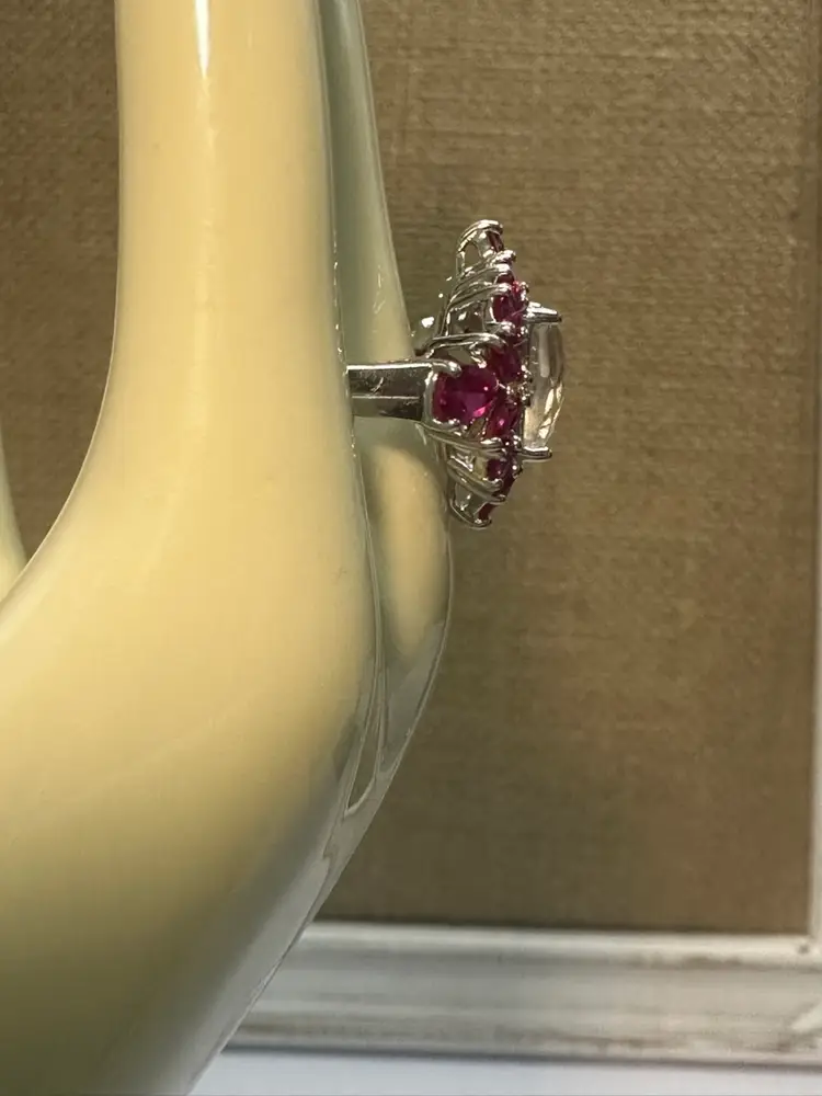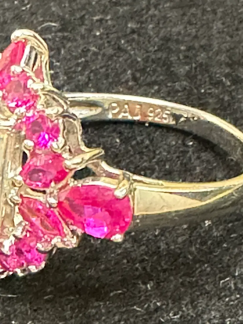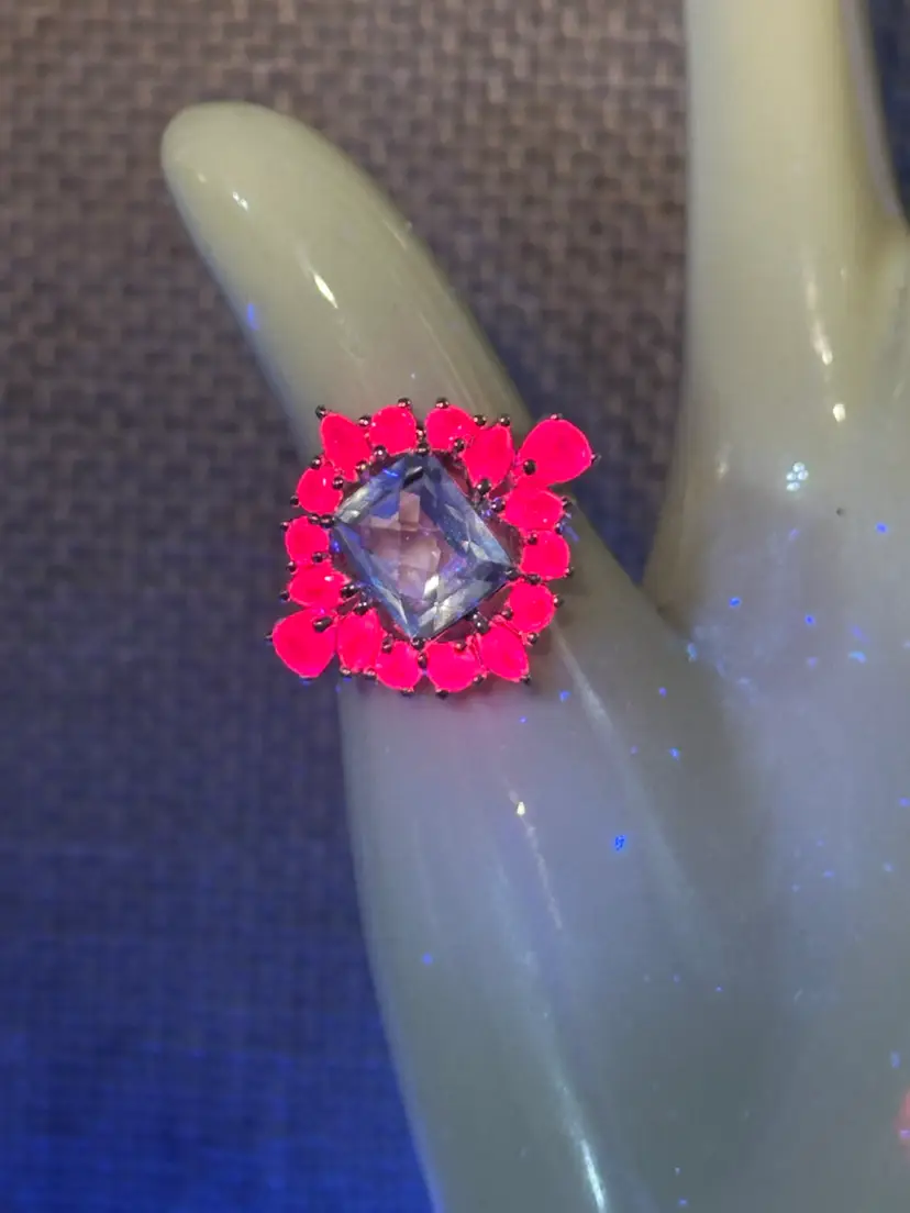 Vintage Sterling Silver PAJ 925 Large Spinel Stone Surrounded by Sapphire Stones Ring Sz 10 Adjustable and confirmed Silver