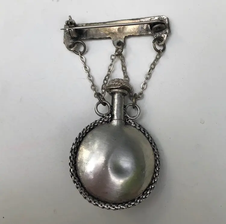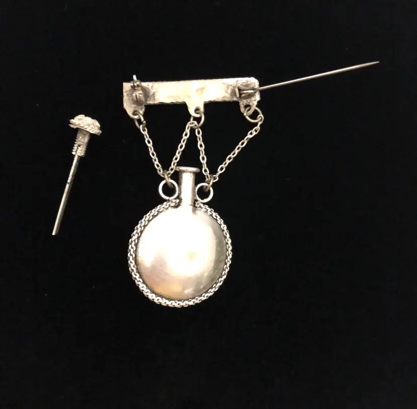 Vintage Sterling Silver Perfume /Snuff Vial Bottle Brooch Pin