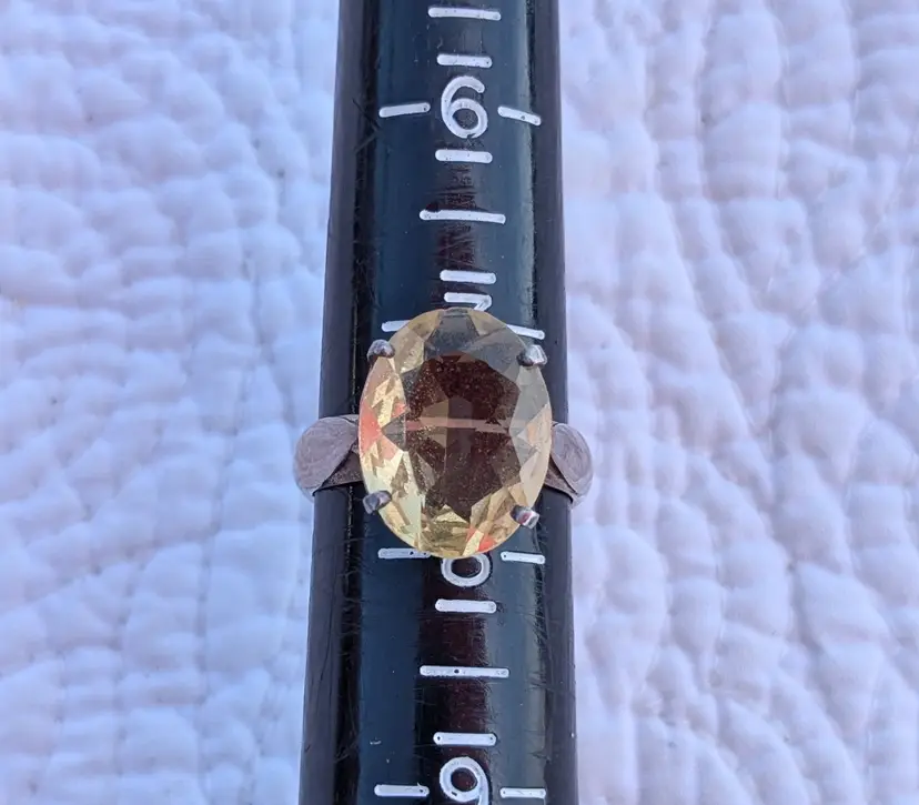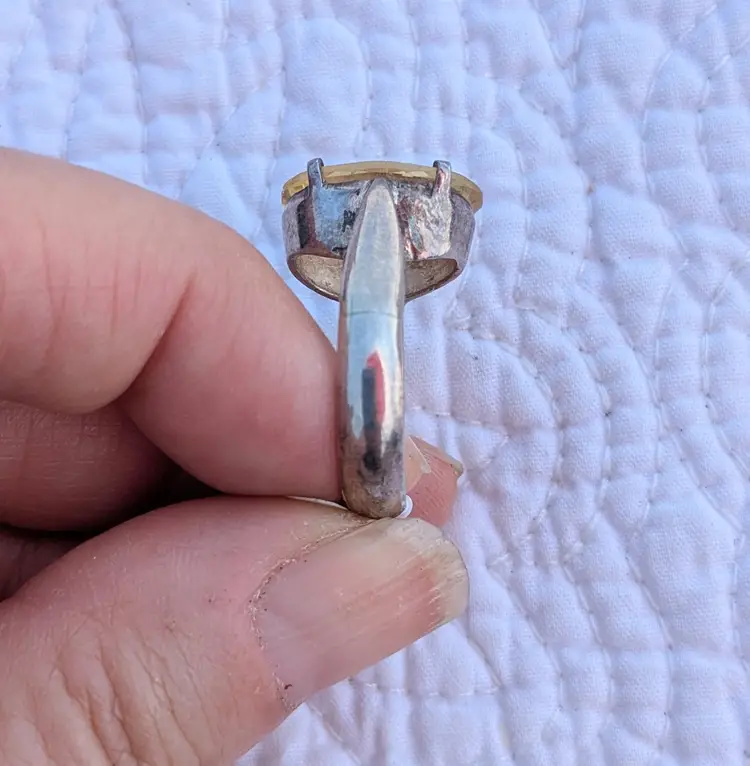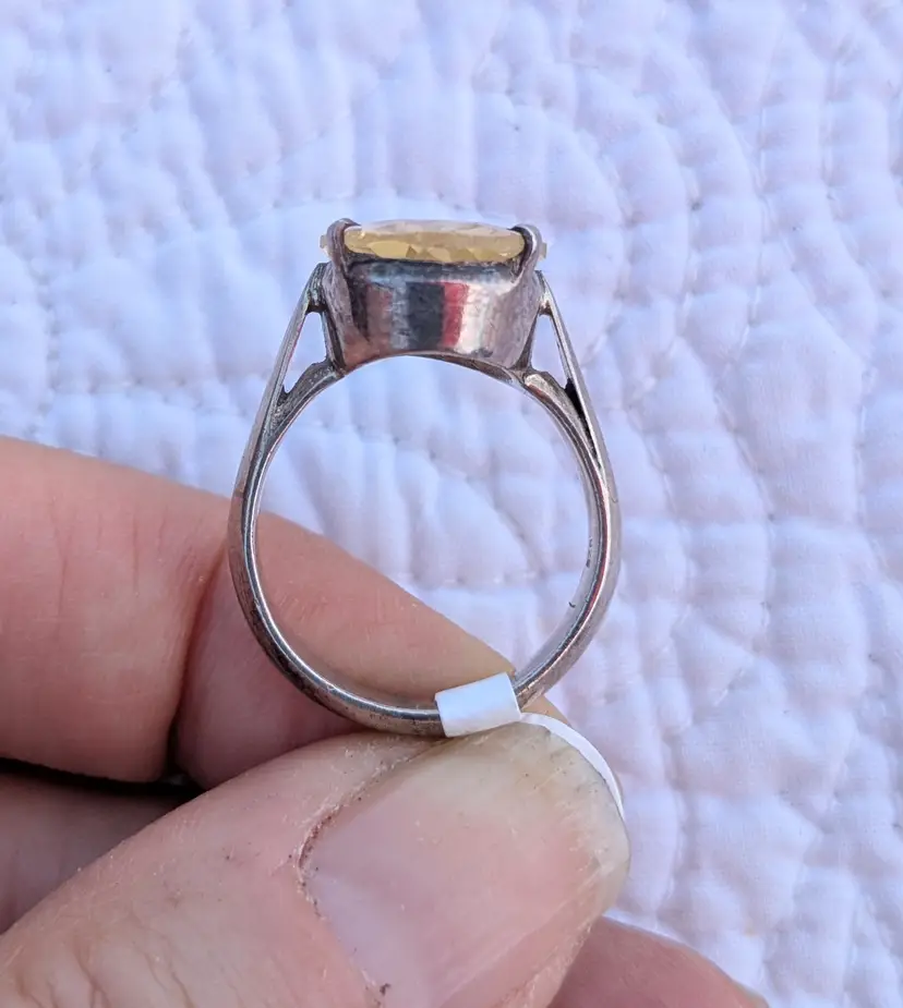 The stone is 5/8" long. The ring is unmarked but acid tests as positive for sterling silver.