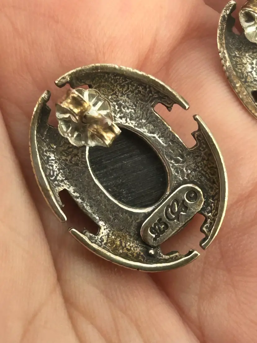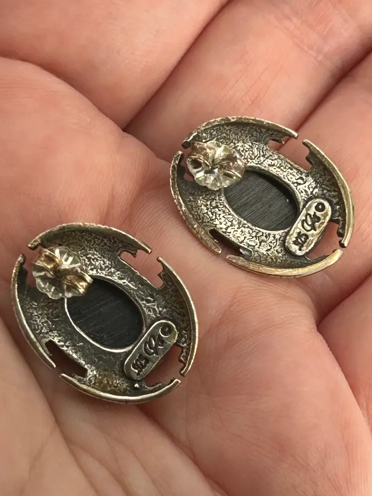 Condition: Pre-owned with natural patina and some surface wear. Stones appear secure and intact. Posts and backs are in working condition.