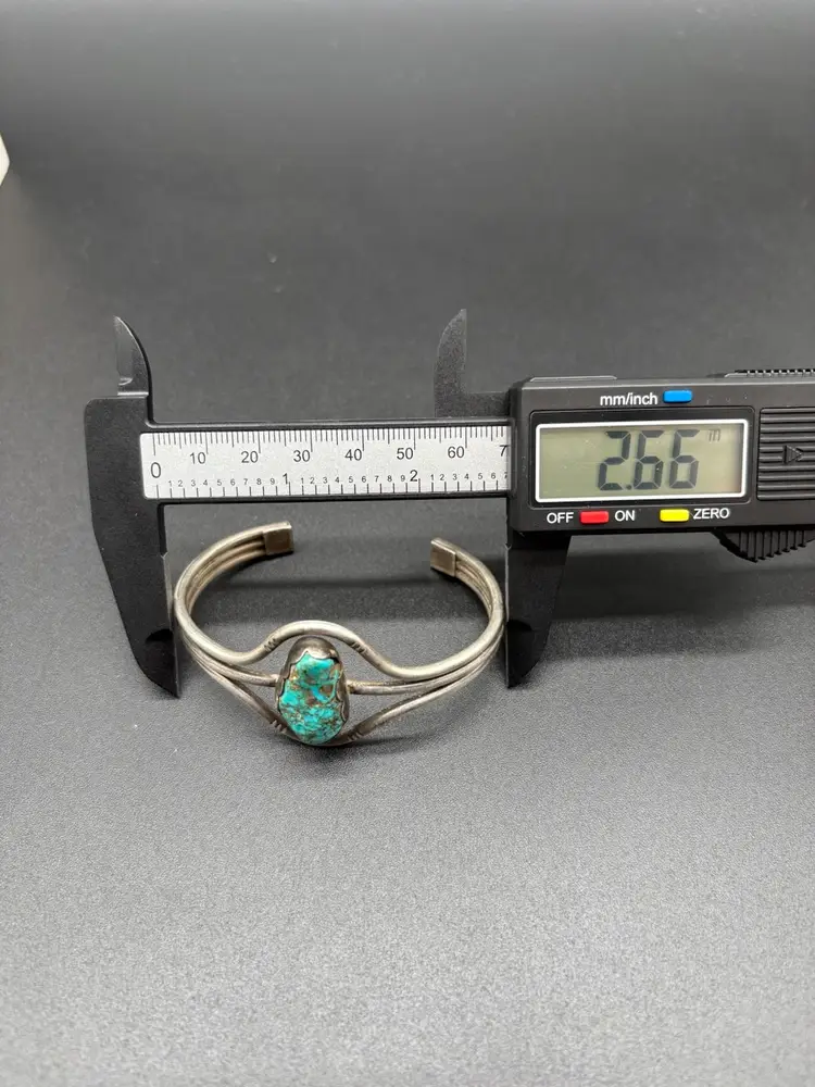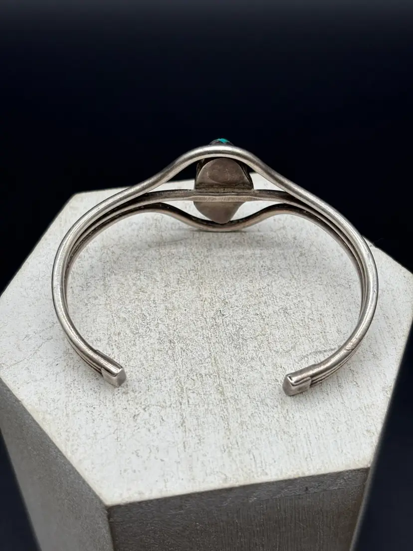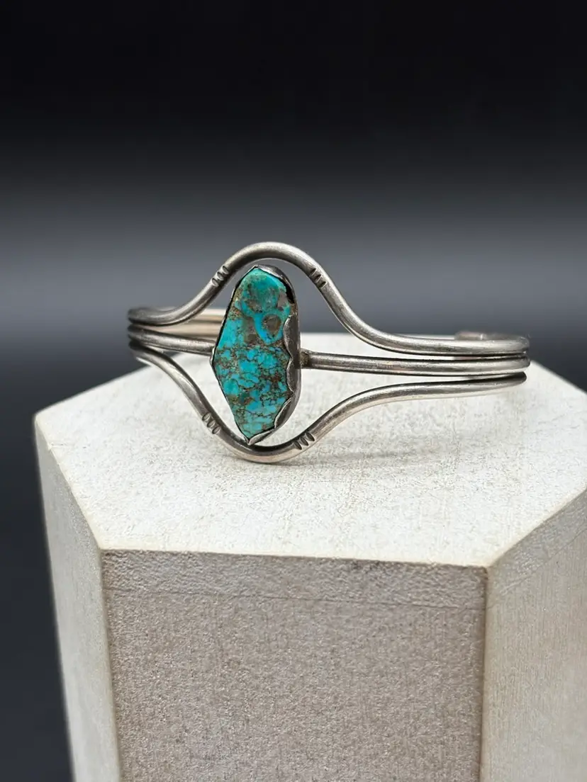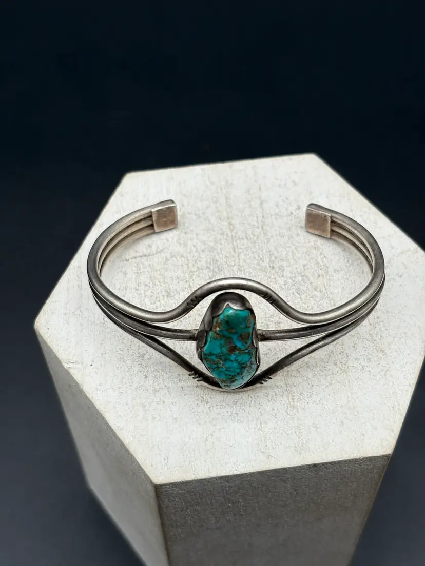 Details: • Tested sterling silver • Natural turquoise (untreated, not stabilized to seller’s knowledge) • Old pawn style • Weight: 29 grams • Cuff bracelet, adjustable • Pre-owned, very good condition