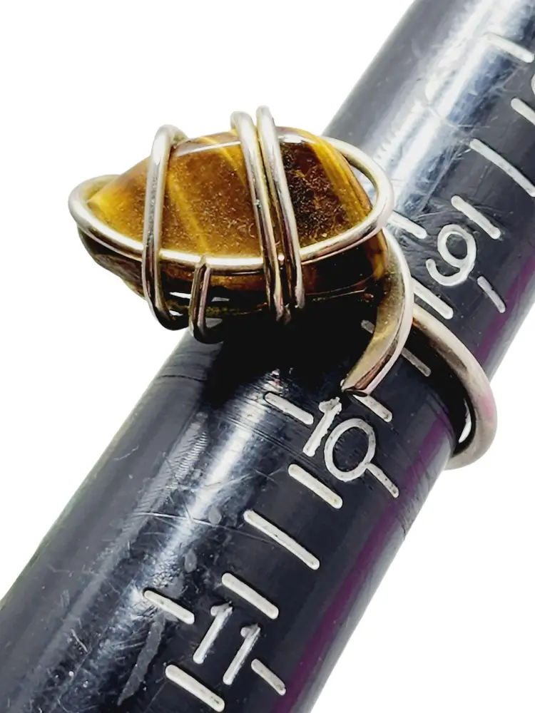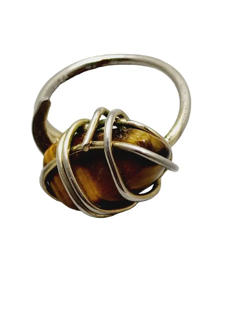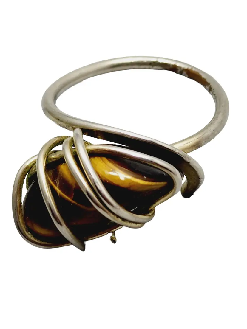 Vintage Sterling & Tiger Eye Abstract MCM Ring Size 8.5 (A1156)