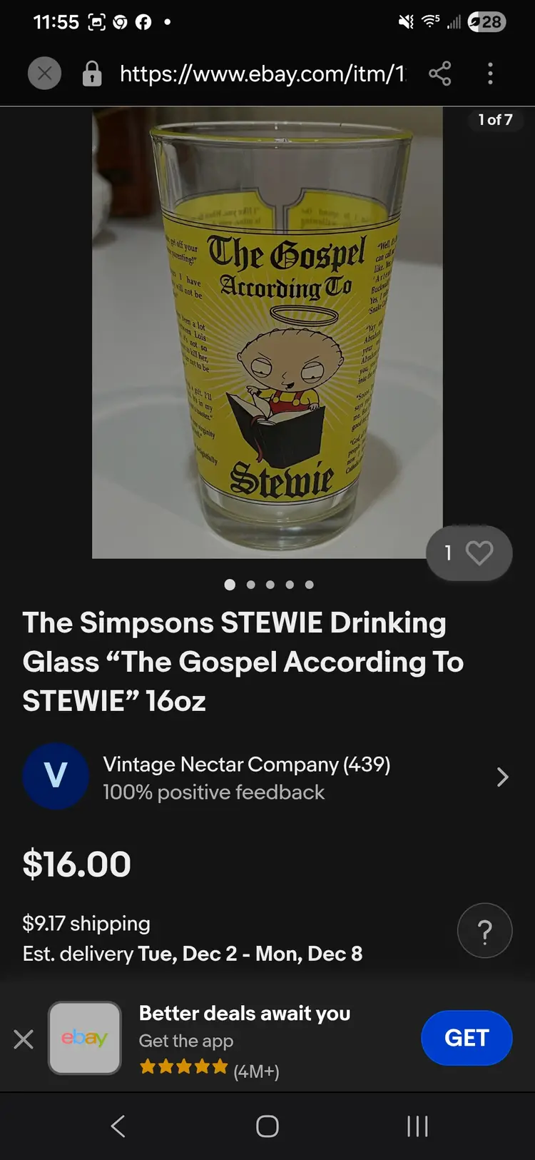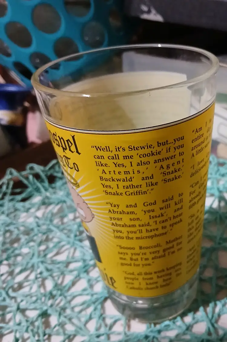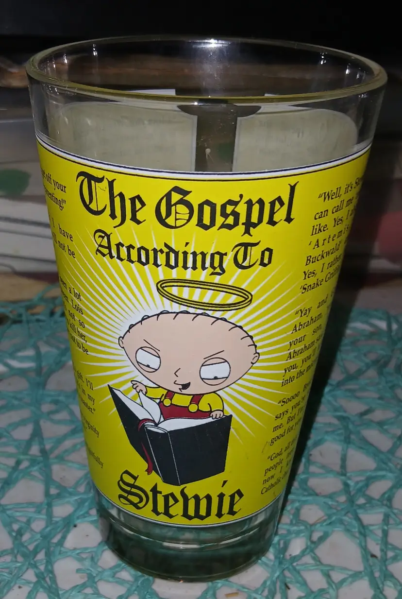 Vintage and great condition, Stevie from the Simpson, " The Gospel According to Stewie," 16oz glass,