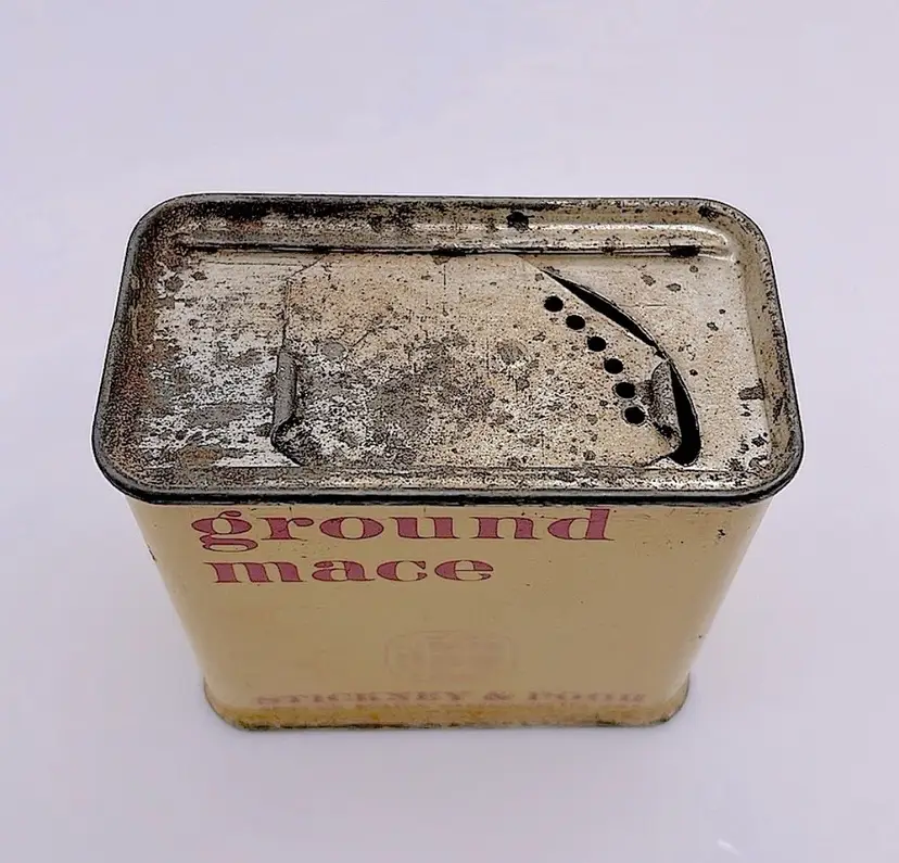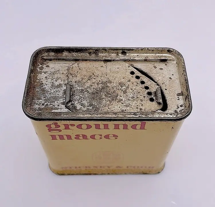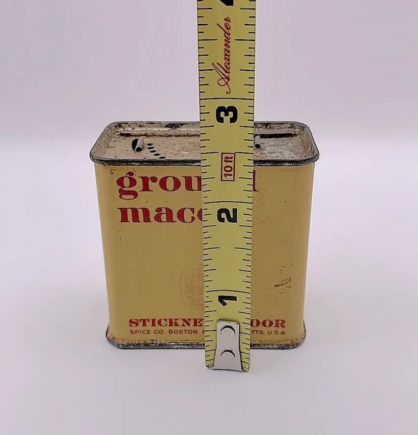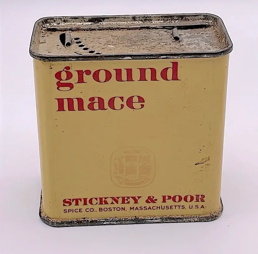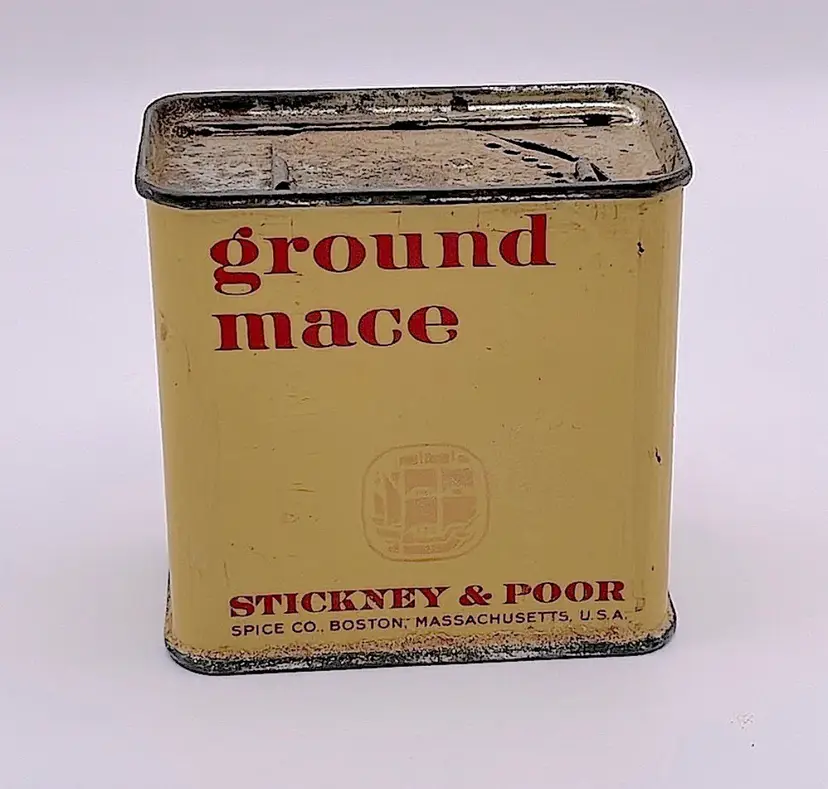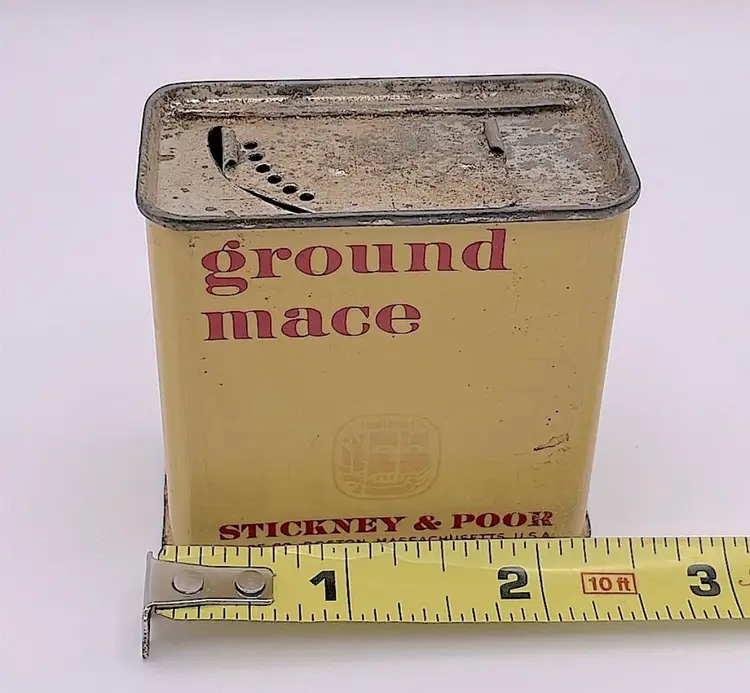 Vintage, Stickney & Poor Spice Co., Boston, MA, USA, Ground Mace Spice Tin (Some Original Product) Please see pictures for measurements.