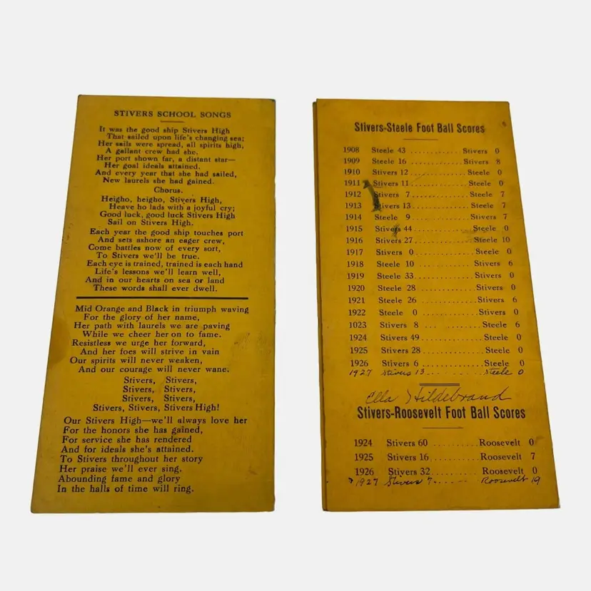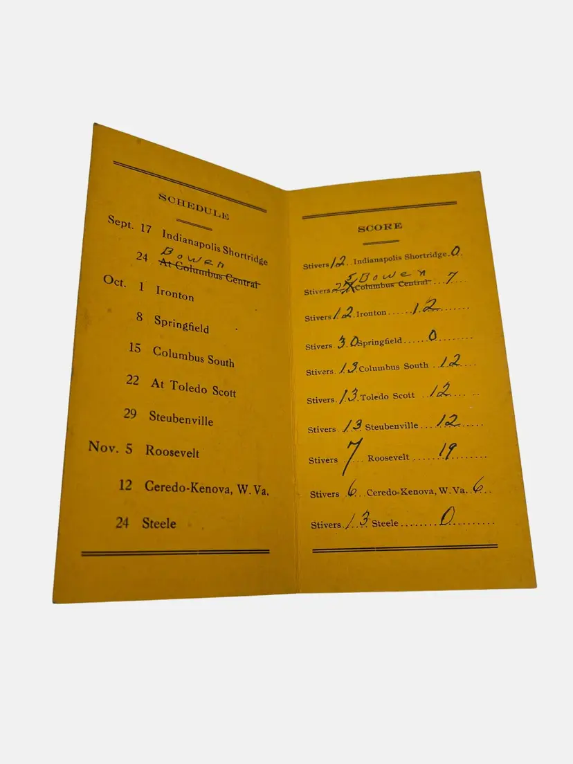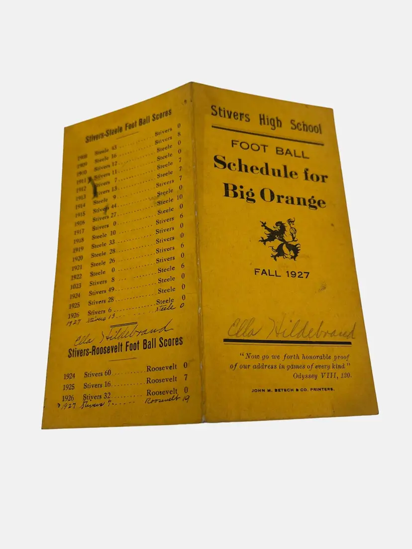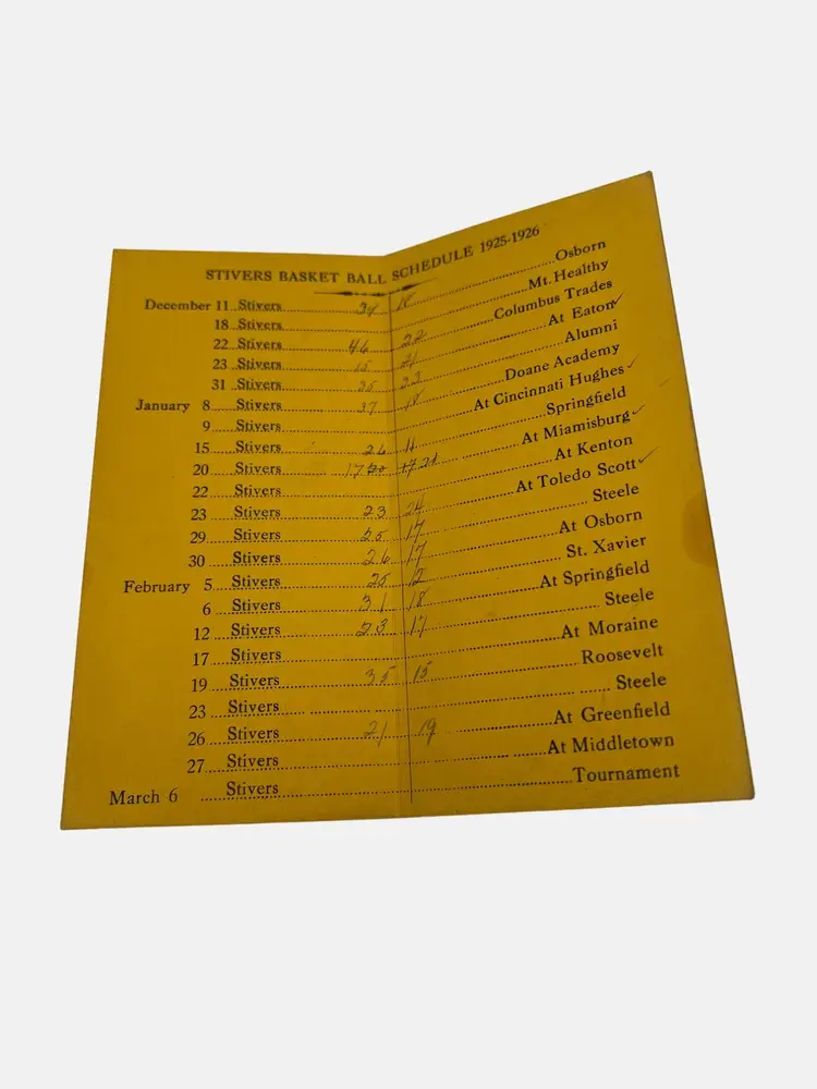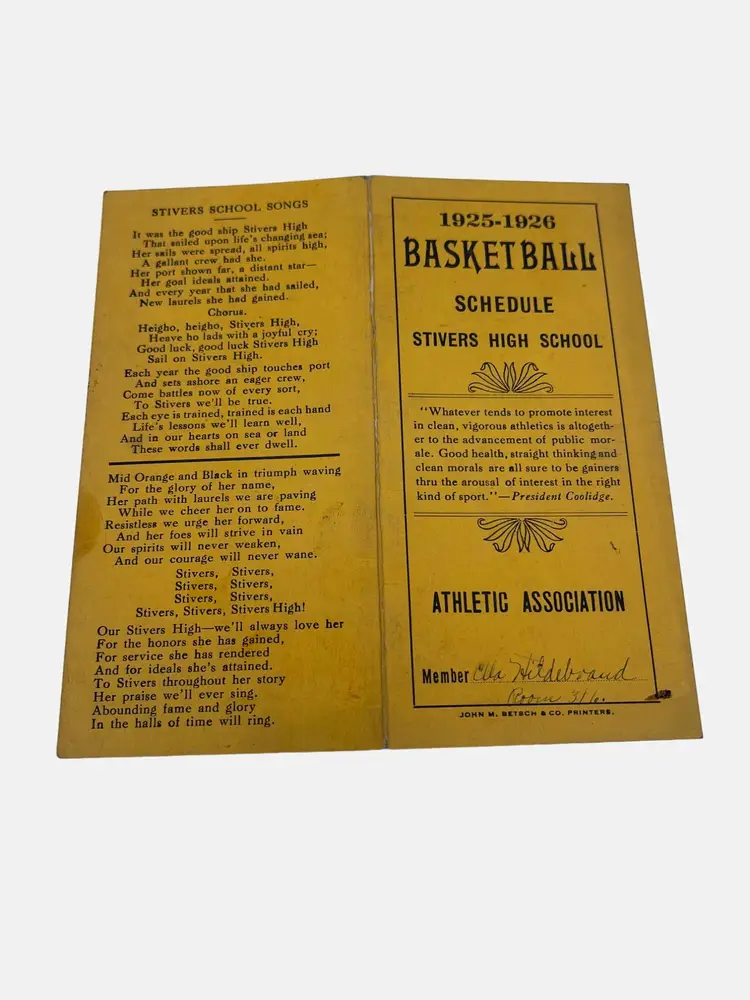 • Includes 1925-1926 basketball schedule • Includes 1927 football schedule • Contains scores and historical data • Original signatures of owner present • Stivers High School memorabilia