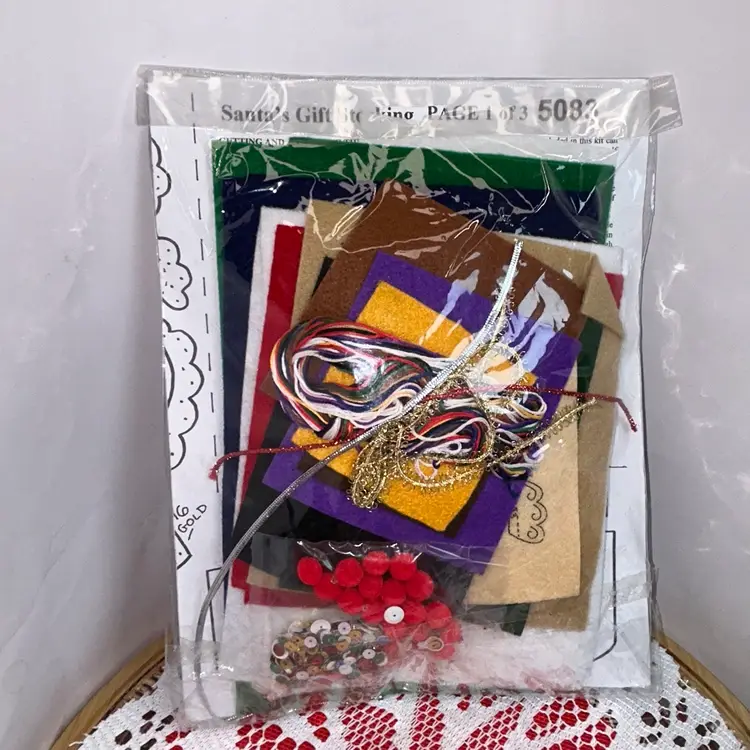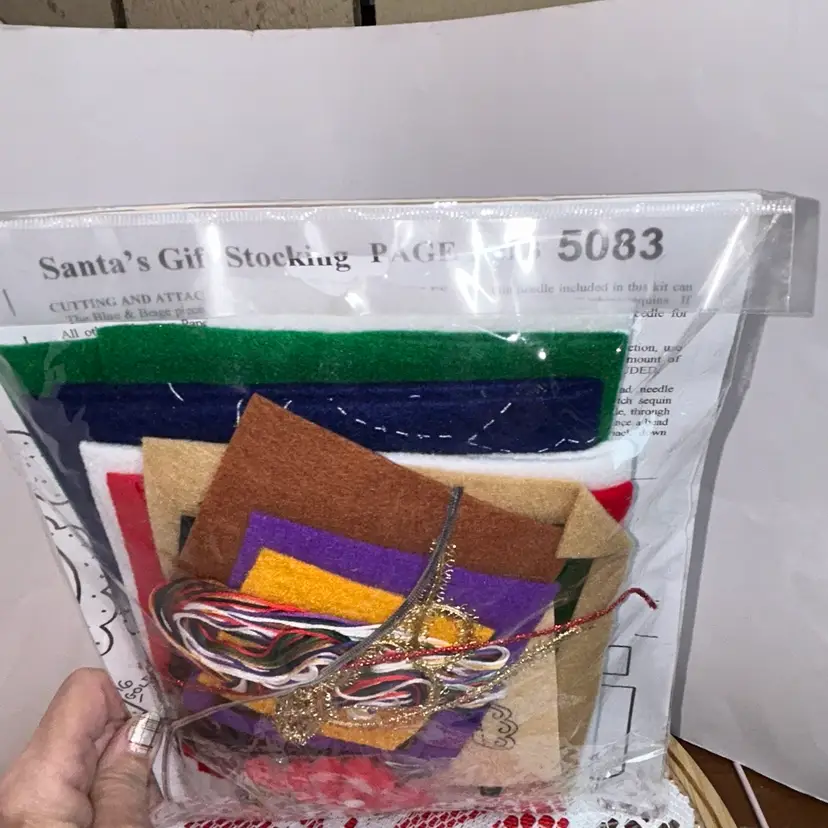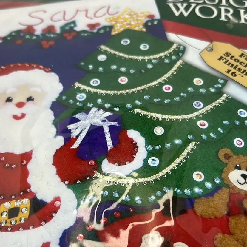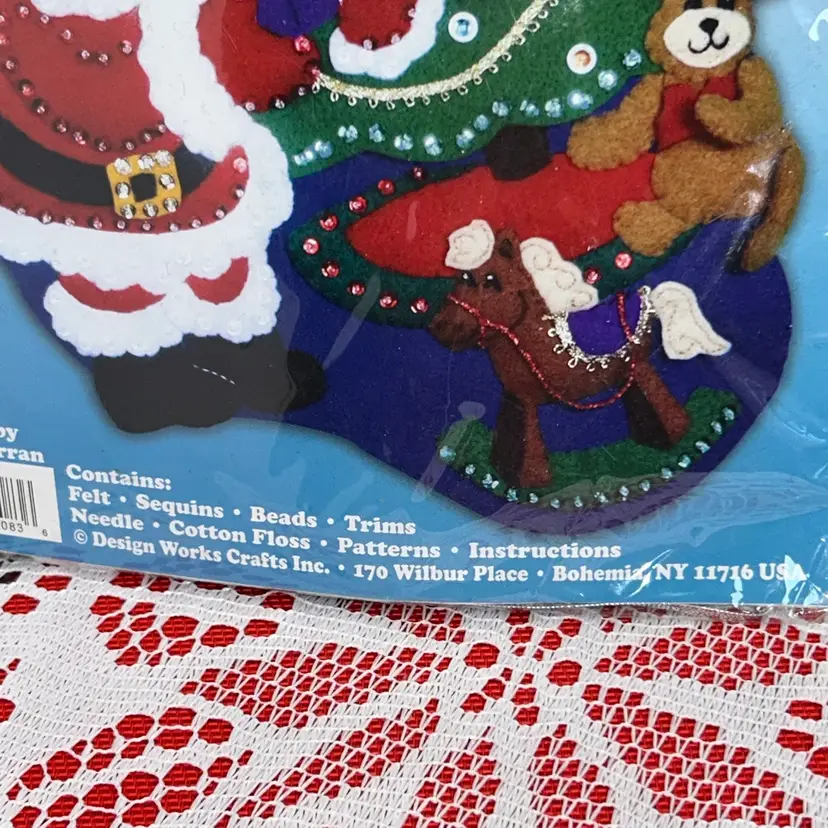 Nos. Never opened. Brand is Design Works. Pattern design by Karen Harran. Santa with Christmas tree and toys. Finished size is 16”