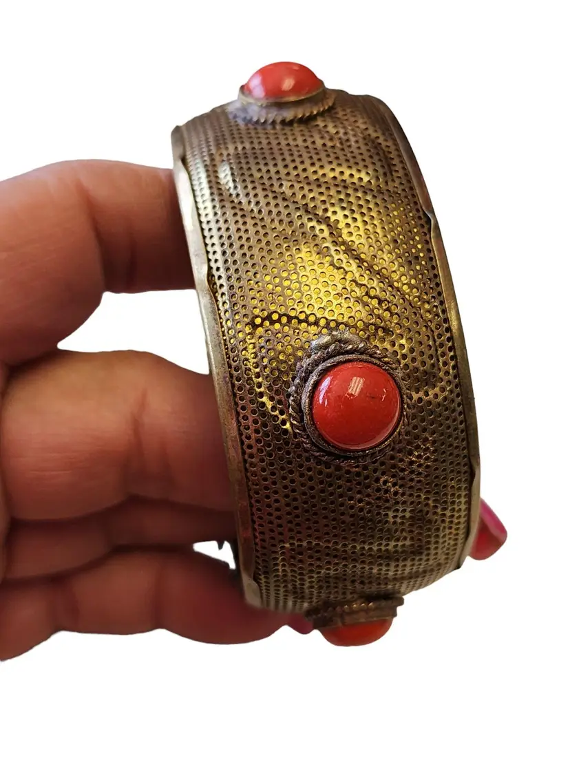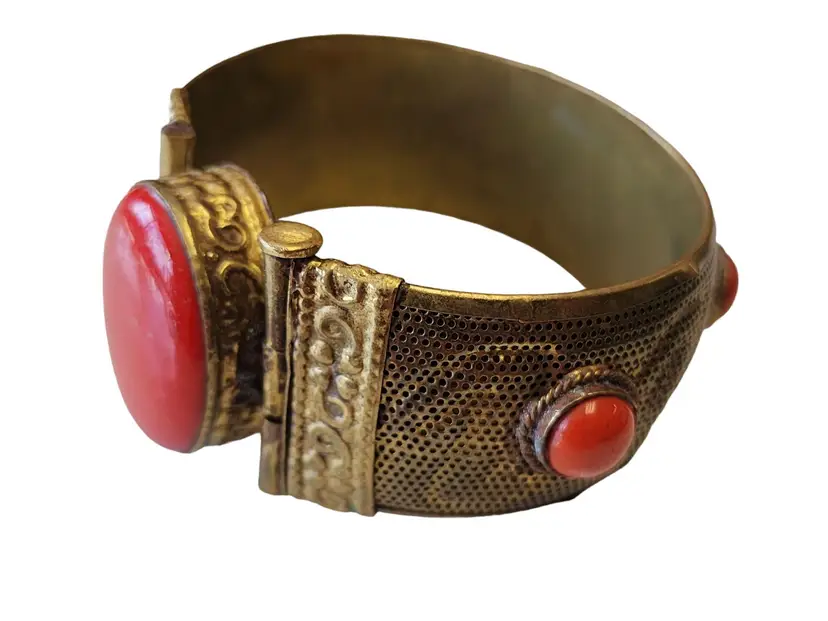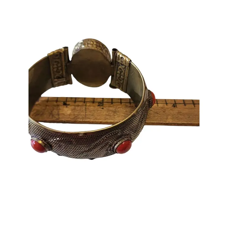 Size: inner circumference 2.75" Color: Red, Gold Condition: Very good vintage Signed: None