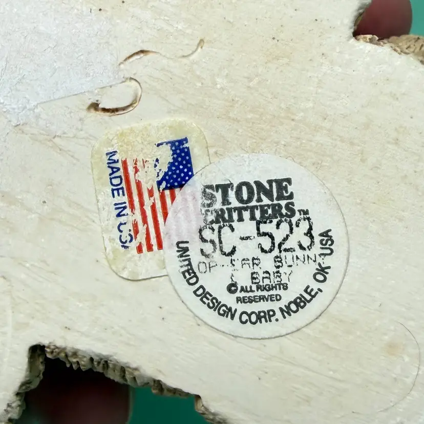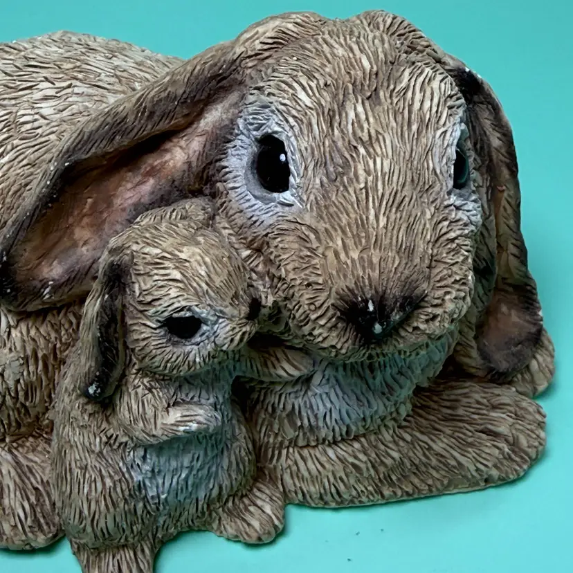 Vintage Stone Critters Brown Rabbit Bunny w/ Baby SC-523 Made in USA Figurine. 2.5" tall x 4.25" long x 3". No chips, no cracks. Labels on bottom. There are some small white spots here or there from wear.