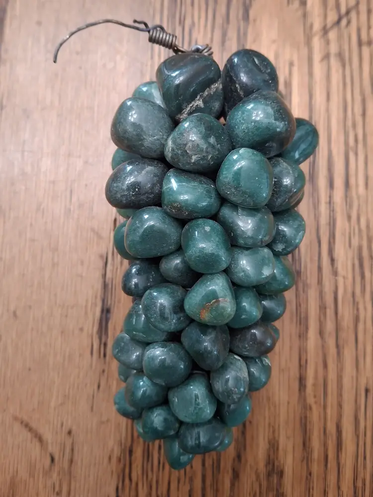Vintage Stone Grape Cluster is 5" long. It is missing its leaves but the wire stem is present, and new leaves can be added. Beautiful and in very good condition.
