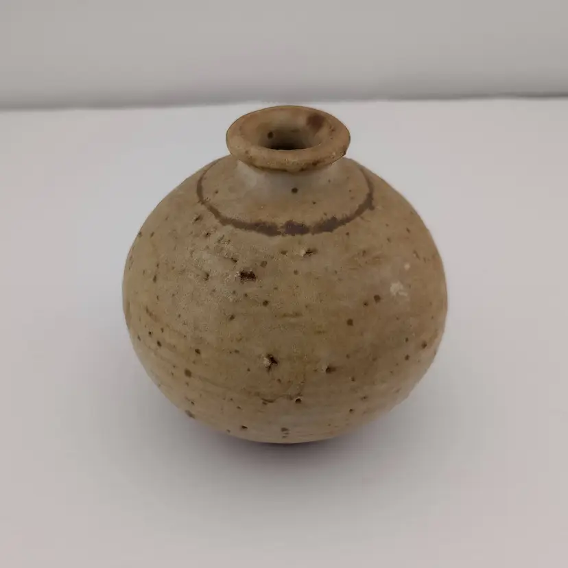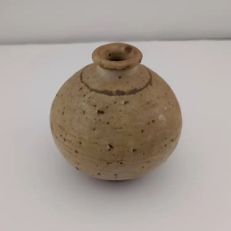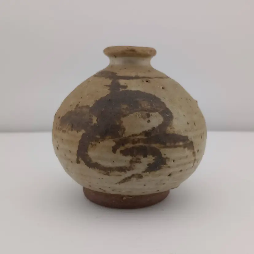 With a beautiful brushwork design, at just 3" tall, this little midcentury stoneware vase can go anywhere. It is in excellent condition with no chips or cracks.
