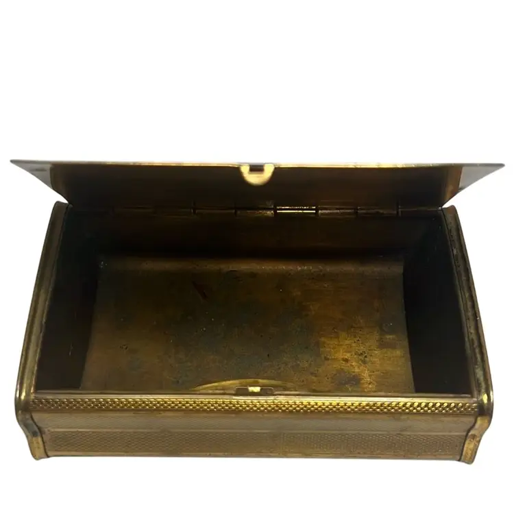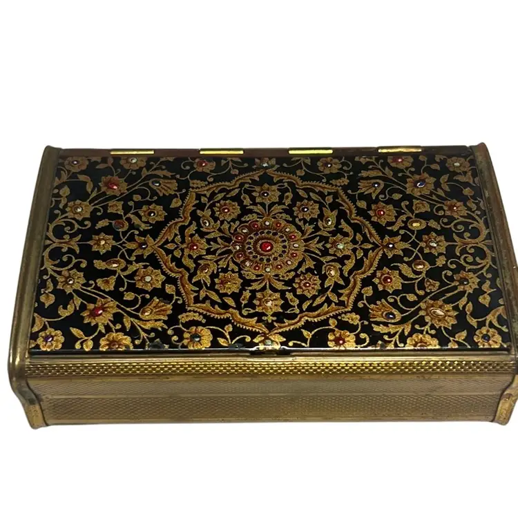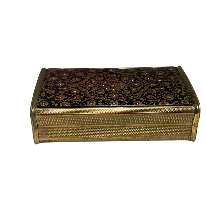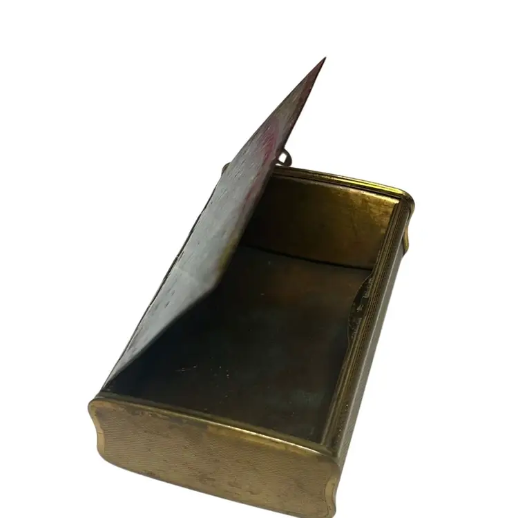 Beautifully decorated with tiny flowers of various colors and golden leaves. Shows normal wear for its age but the hinge opens easily and it has no chips or dents. Measures 3.5” wide & .5” tall - Very elegant