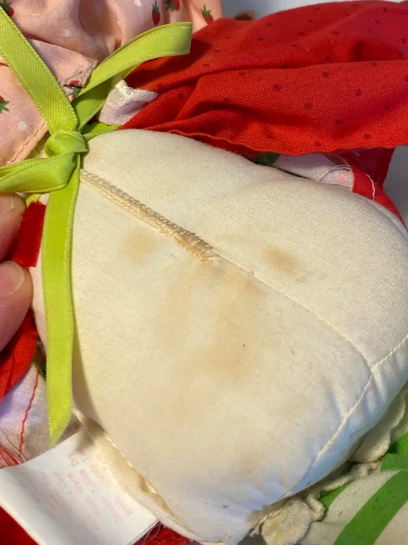Good used vintage condition. Does have some discoloration shown. I did not attempt to wash.