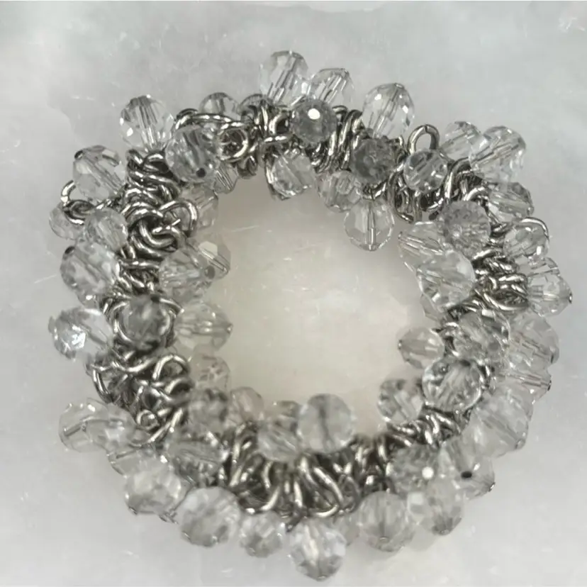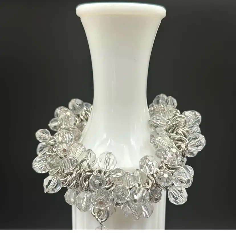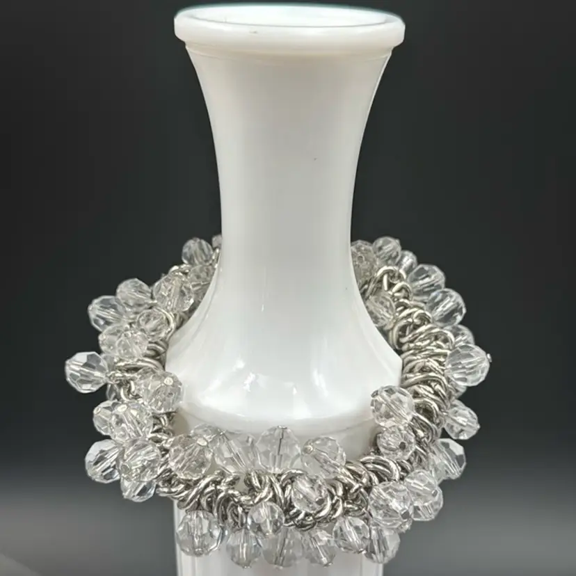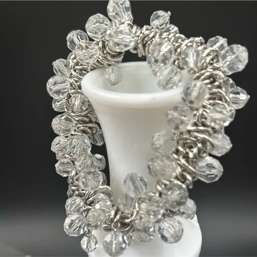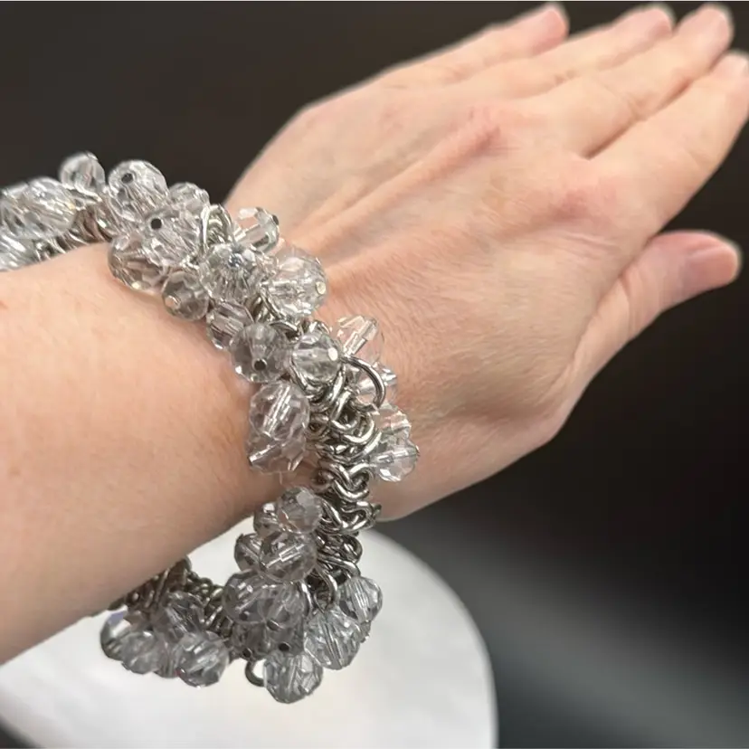 8”W 1”A no chips cracks or brakes and wonderful vintage condition. It’s a very nice stretch bracelet. This bracelet makes a statement.