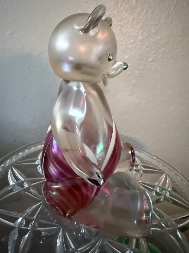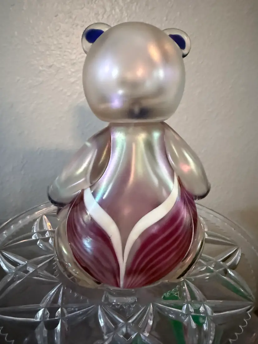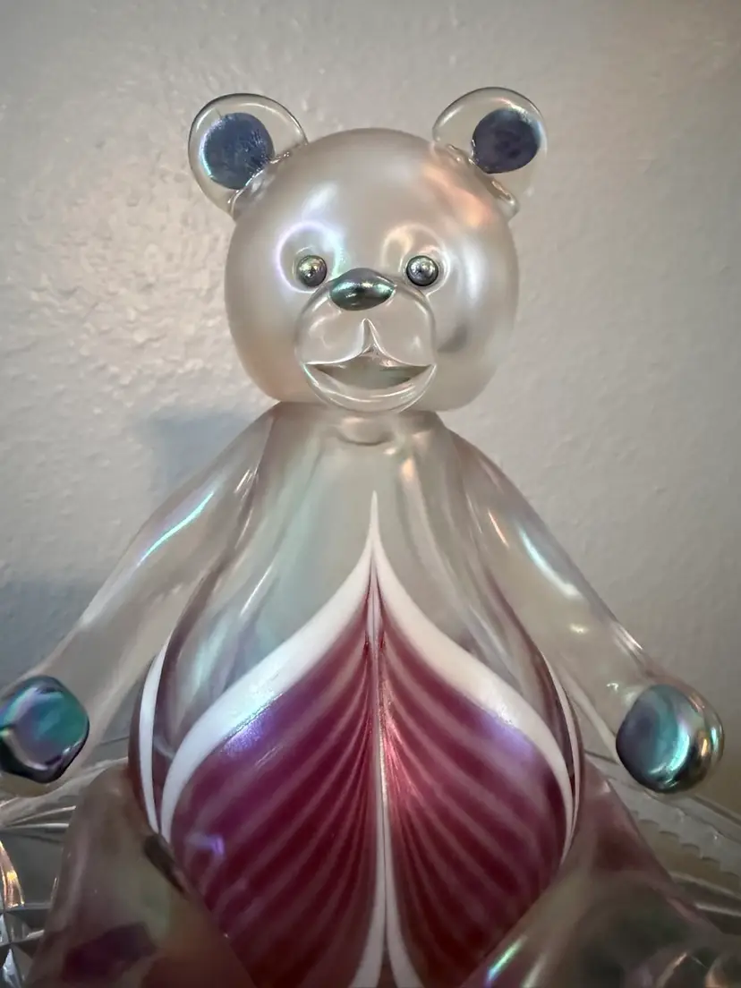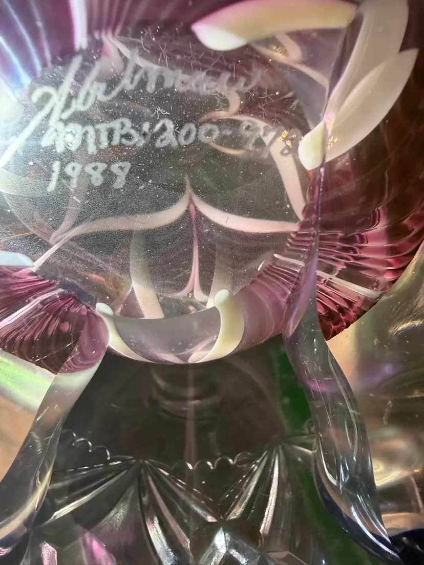 Cranberry-colored pulled-feather design. Signed and dated on the base “Abelman # and 1988” see photos for dimensions (Heavy piece)