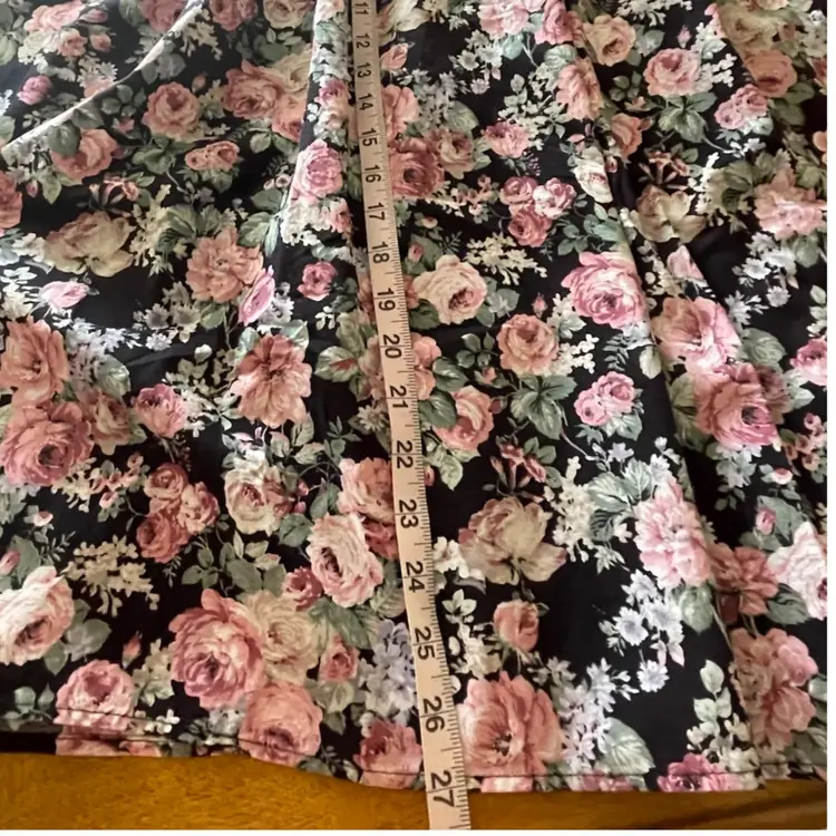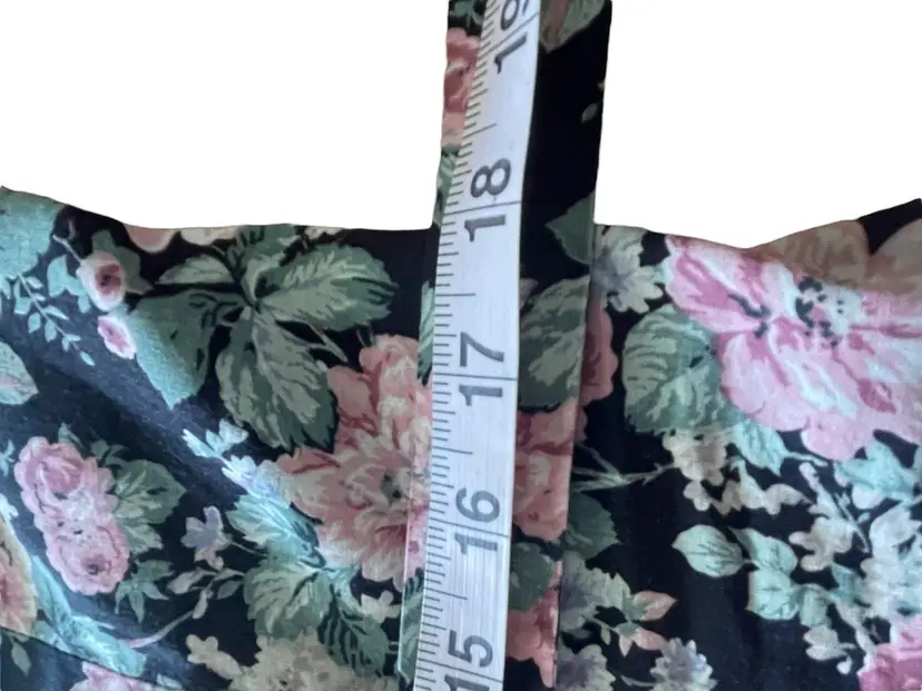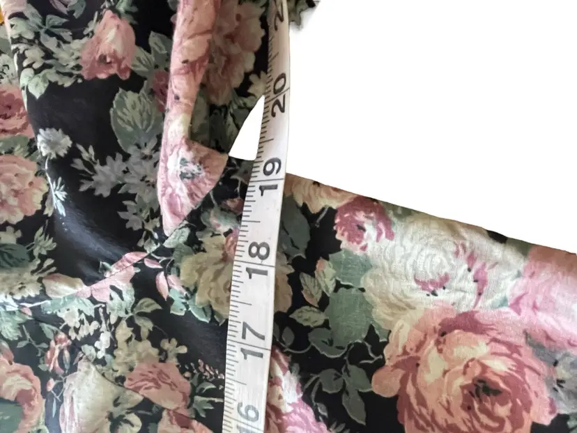Measurements are 19” flat across chest 18” flat across waist 27” from waist to hem.