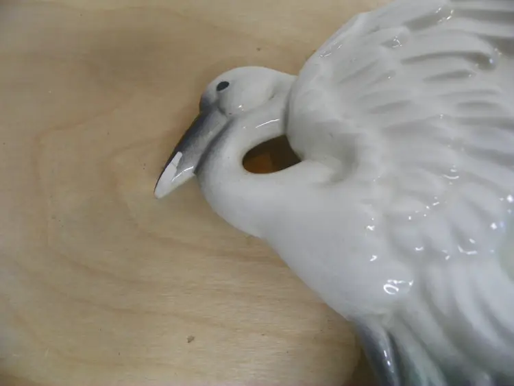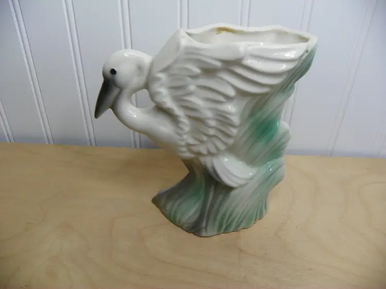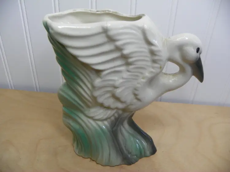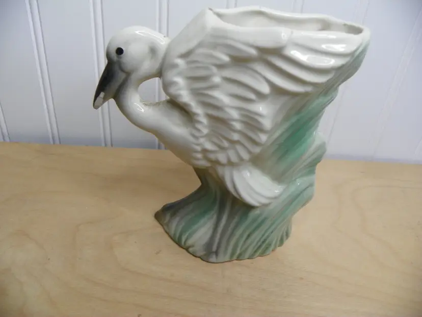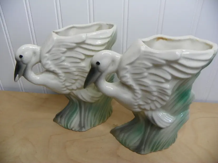Set of 2 MCM whimsical swan vase by Stuart McCulloch. One has obvious wear but no damage. The other has a chip on beak and a crack on side but not noticeable if displayed the other way.
