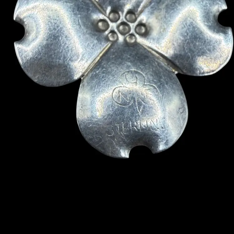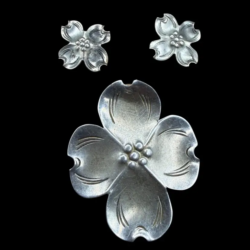 vintage Stuart Nye sterling silver dogwood flower brooch and matching earrings