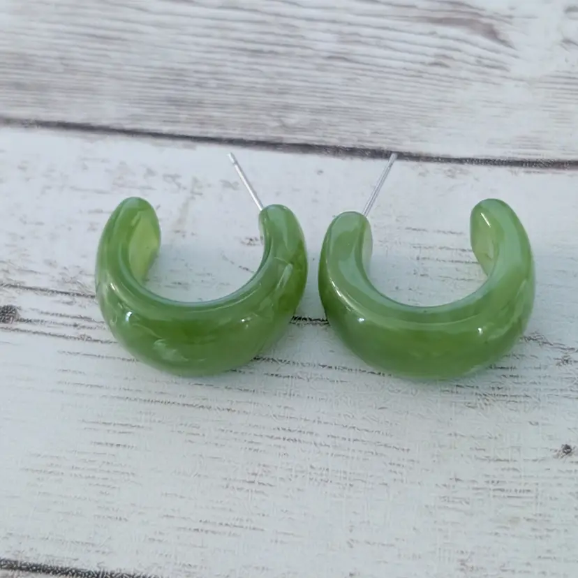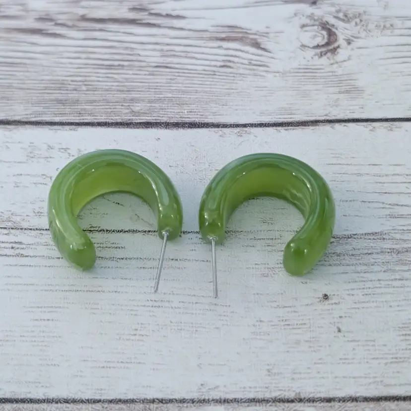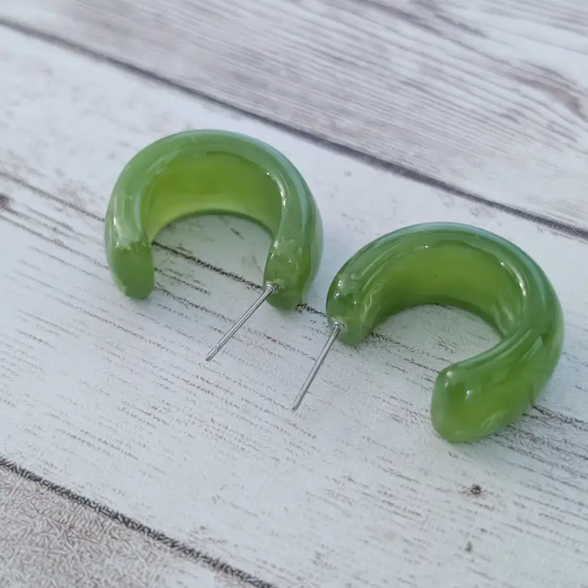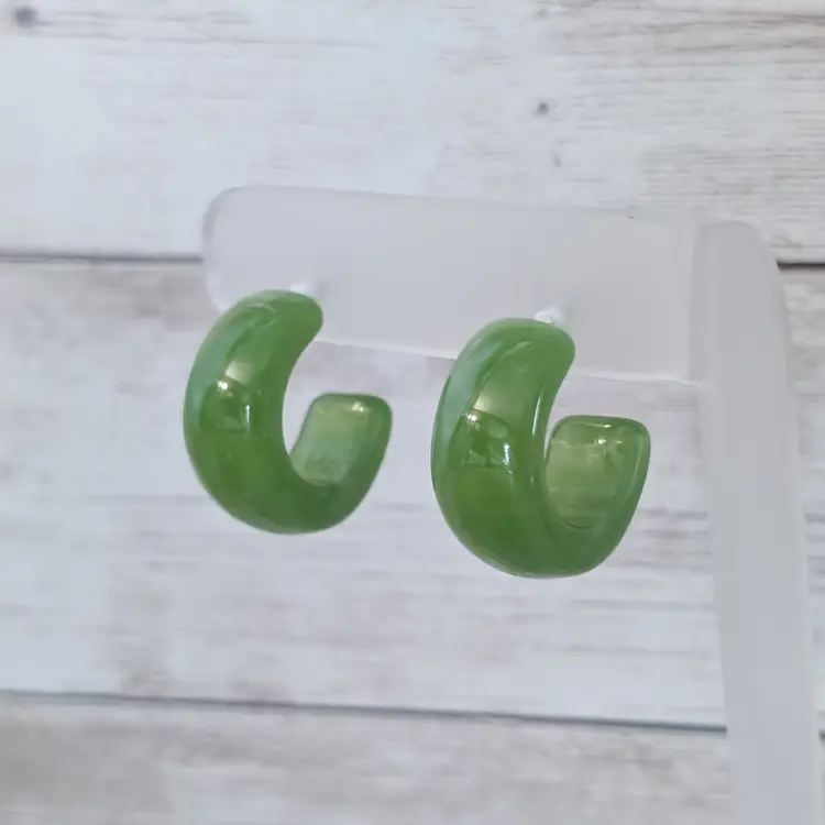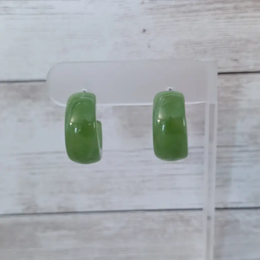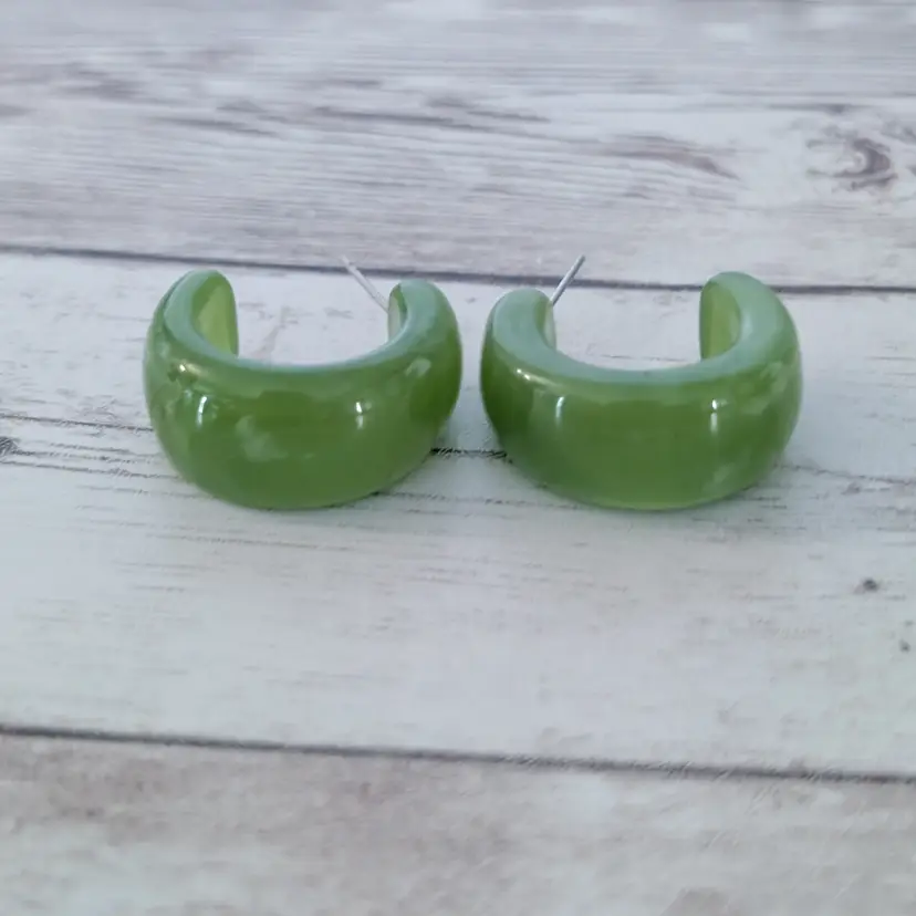 Vintage Stud Earrings Chunky Green Hoops Retro