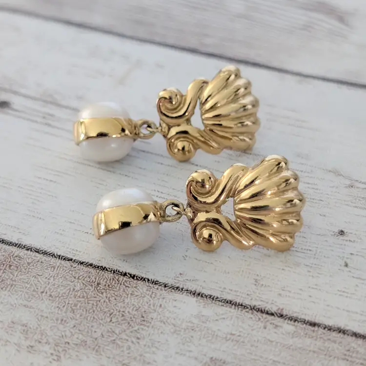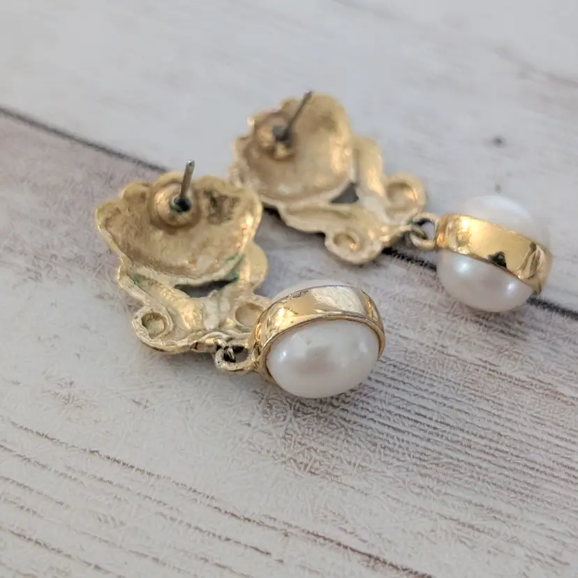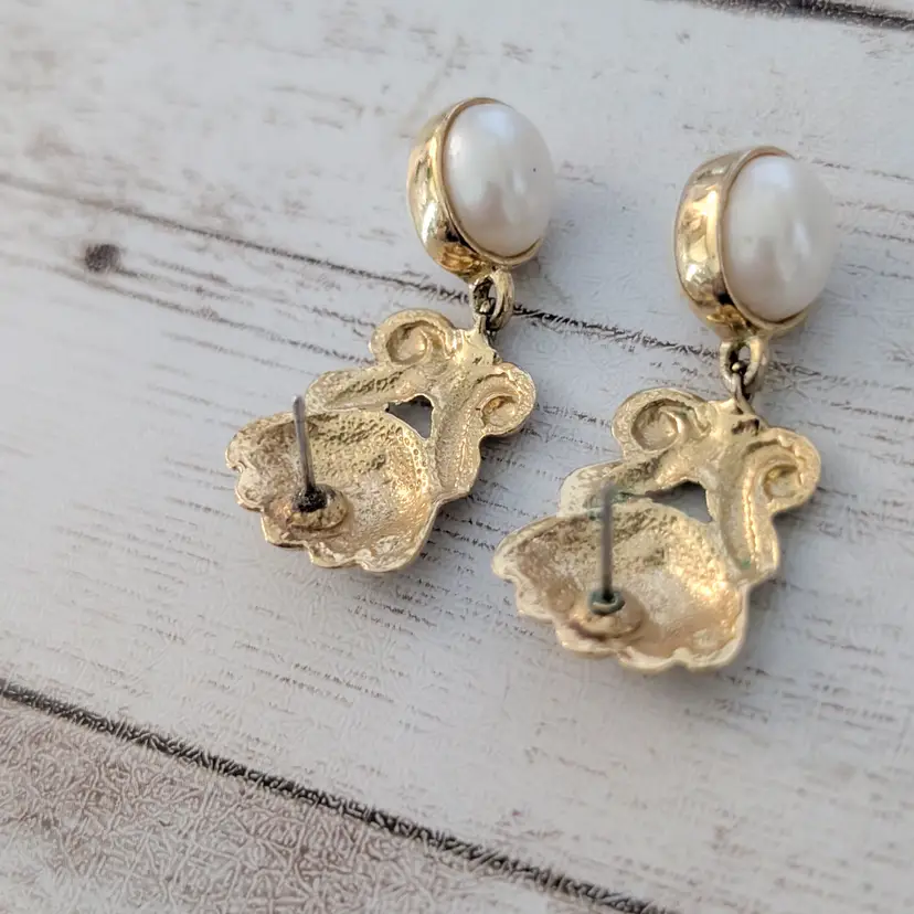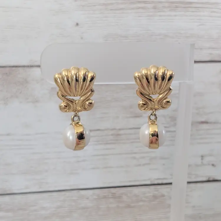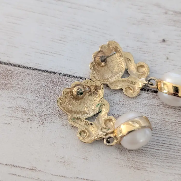 Vintage Stud Earrings Gold Tone & Faux Pearl Regal