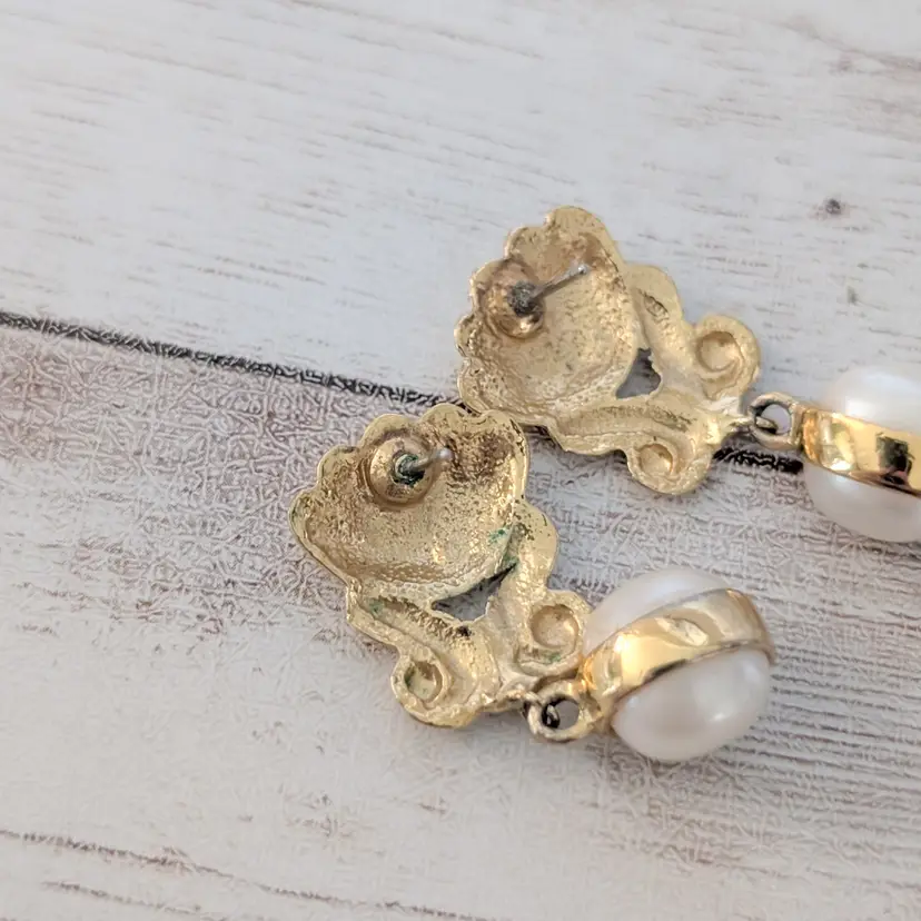 Preowned vintage earrings, sold as shown - I am unsure of material type(s) because of this. Pictures show different angles for you to review - while I attempt to note any defects, some tarnish/signs of wear may be visible that are not otherwise stated.
