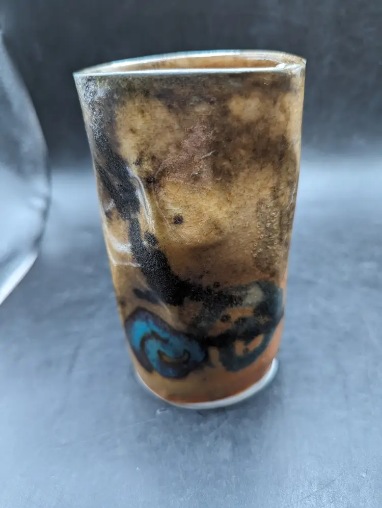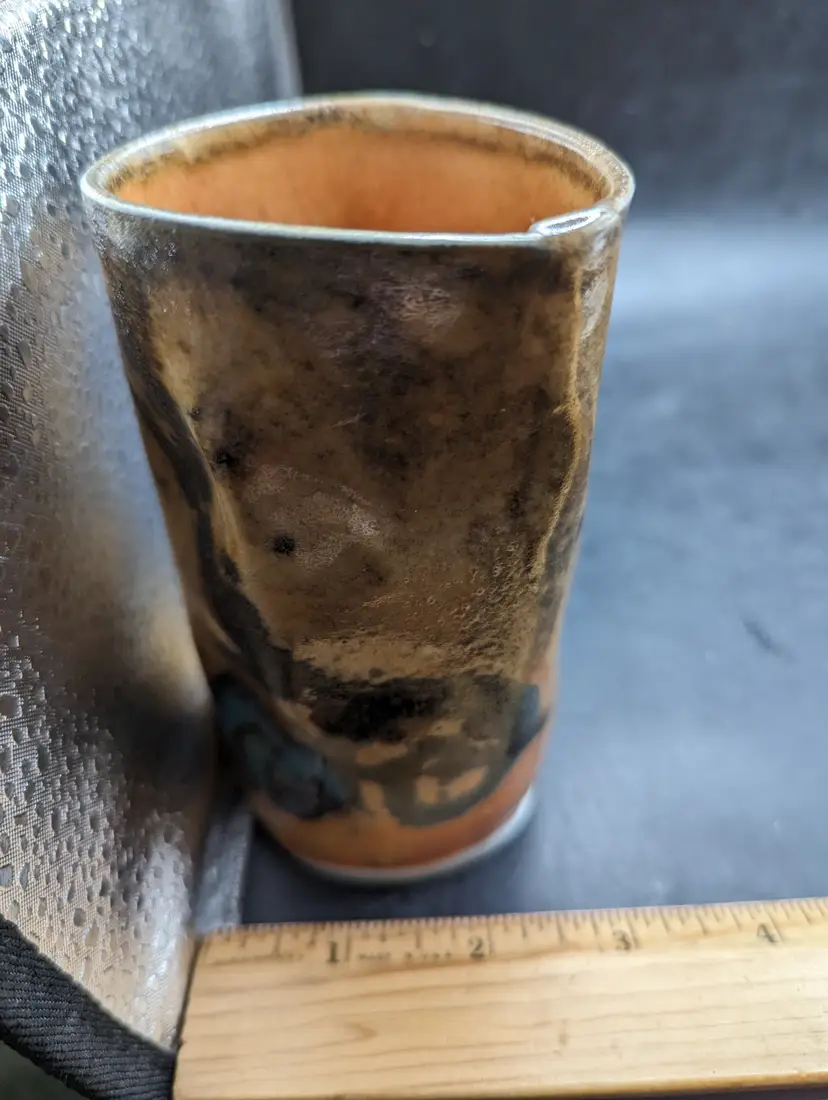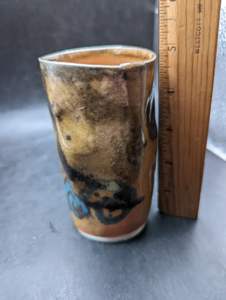 This is a fantastic Vintage Studio Art Pottery Signed Vase/Tumbler. Very primitive style with various glazes. Please see all pictures for condition and measurements.