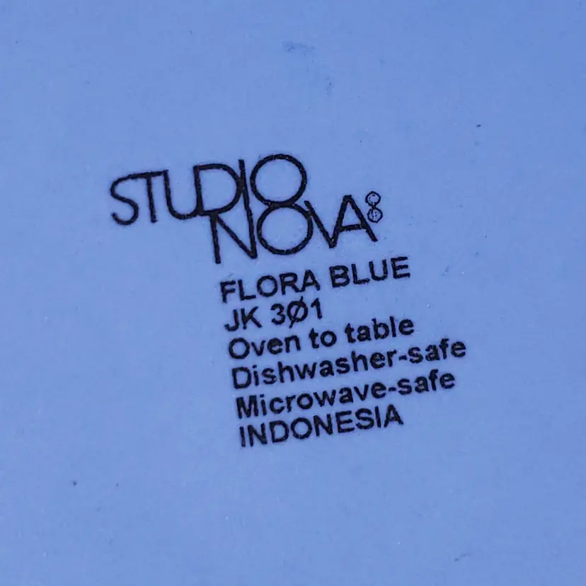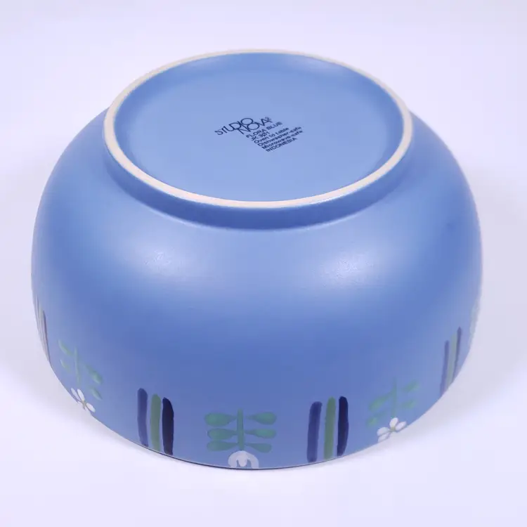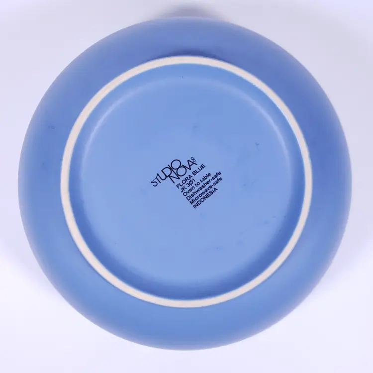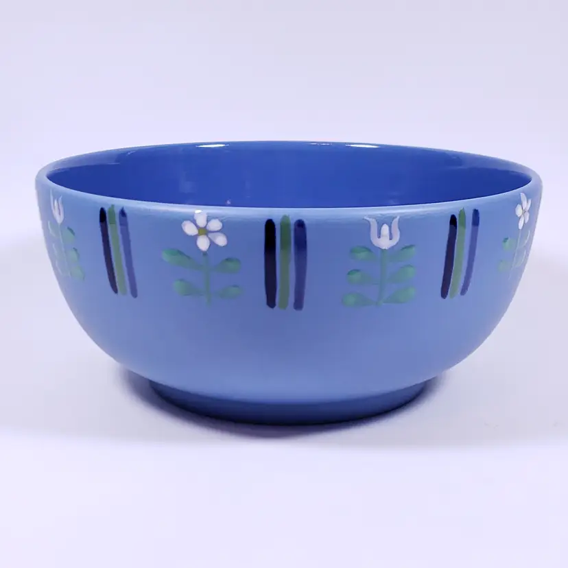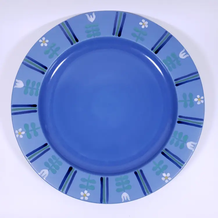 Vintage STUDIO NOVA Flora Blue White Enamel Flower SERVING BOWL & CHOP PLATE SET