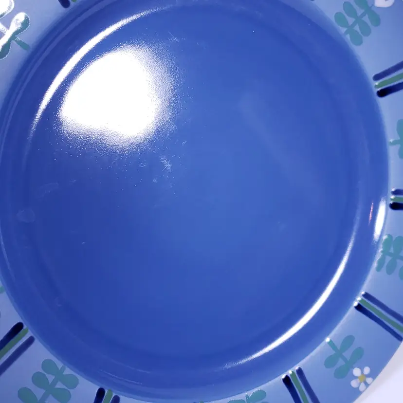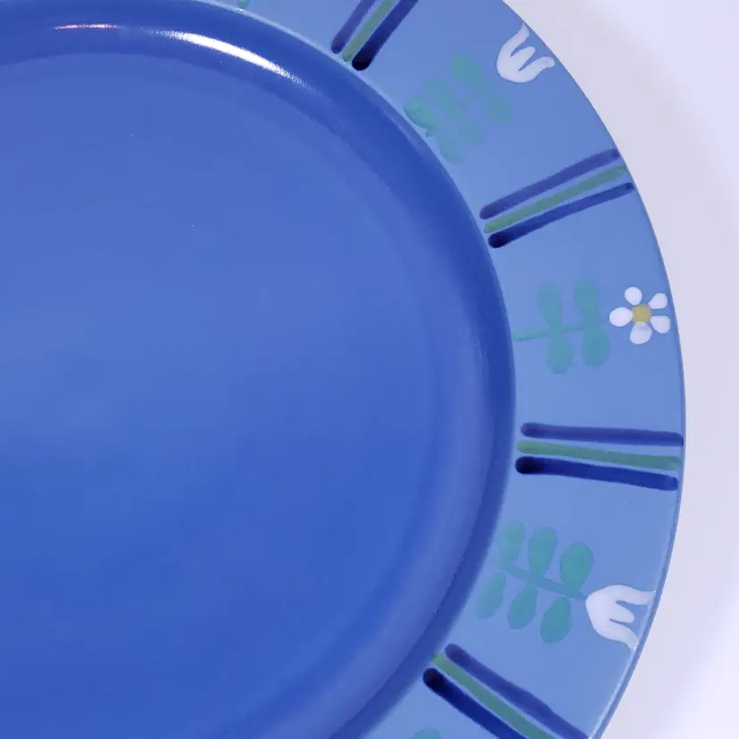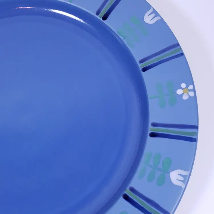 • Hand painted, white enamel wild flowers with green & dark blue lines