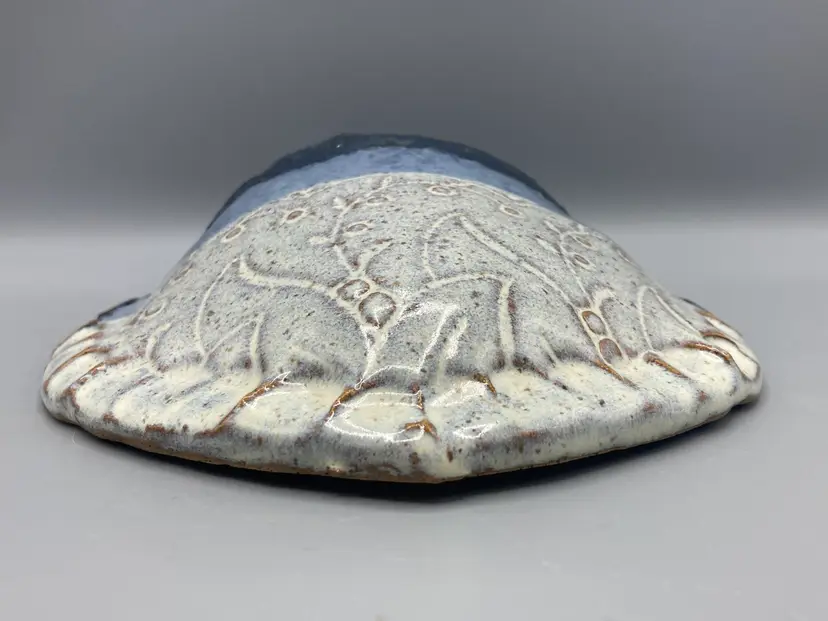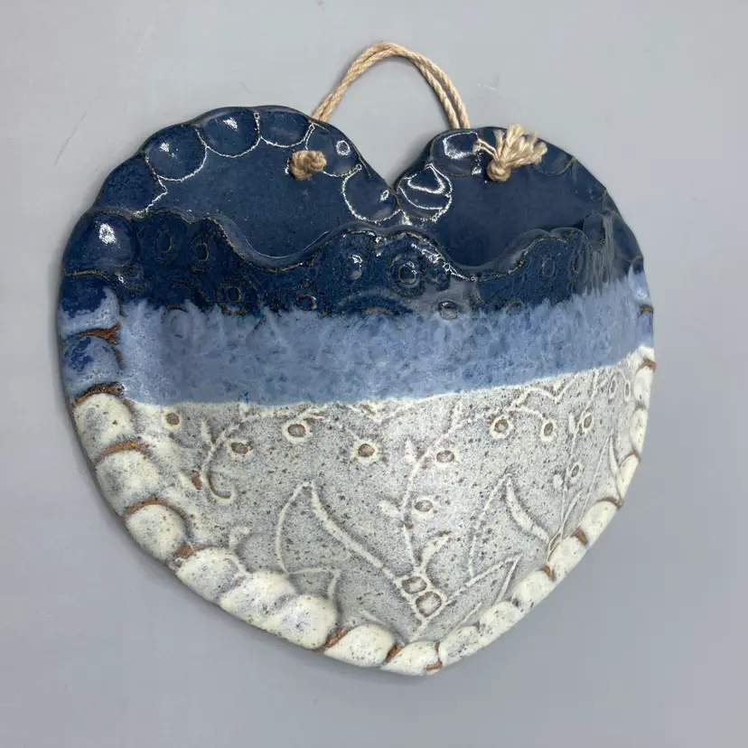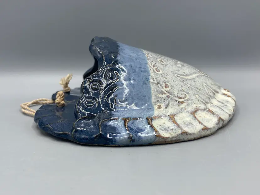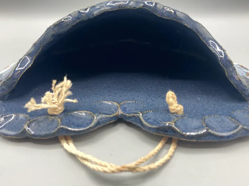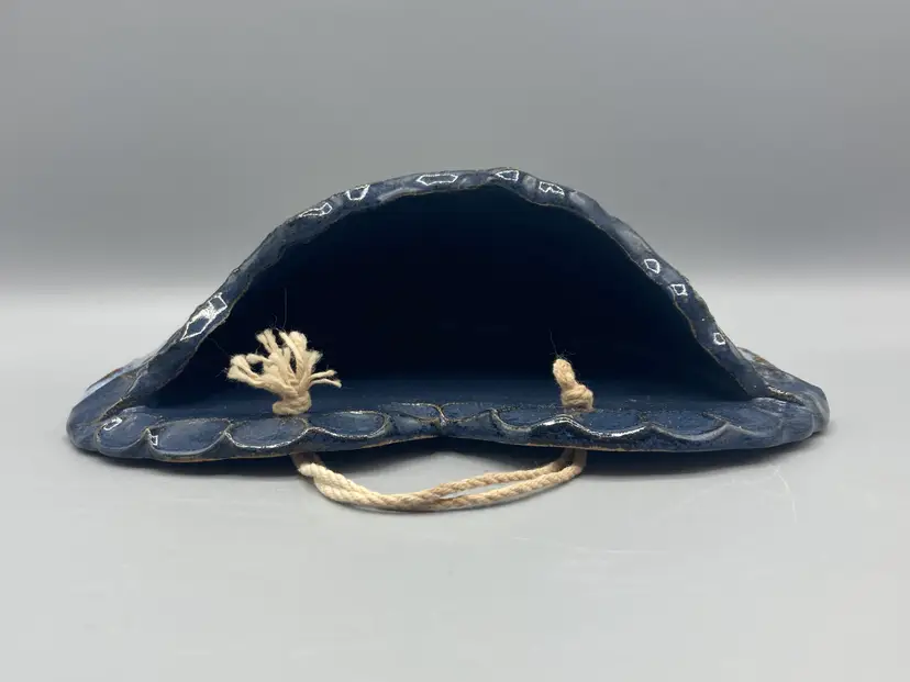 This wall pocket is in good condition. It measures approximately 6 1/2" tall x 7" x 2 1/2" deep.