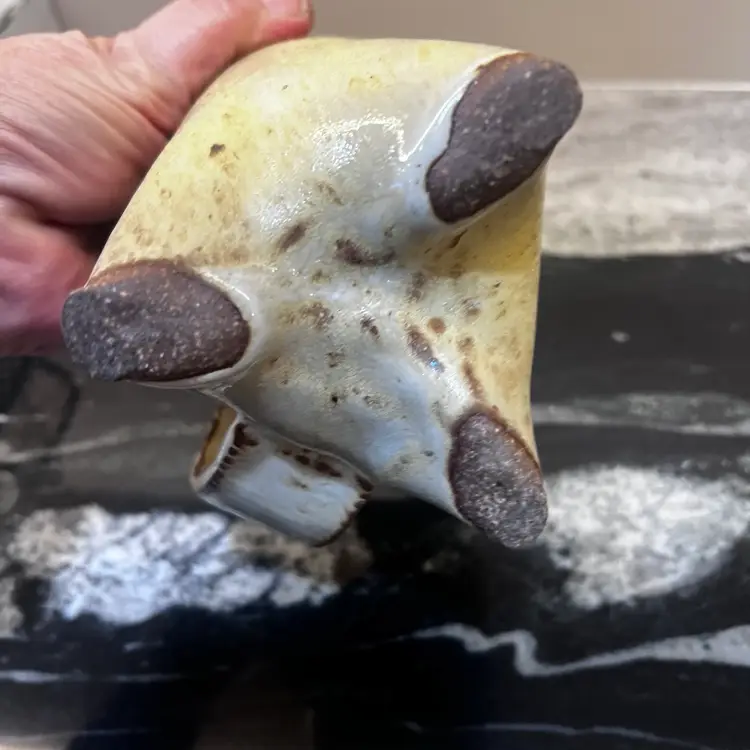 Such a cool shape looks to be handmade in a studio and not signed approximately 5 inches tall good condition