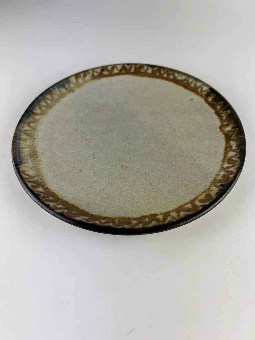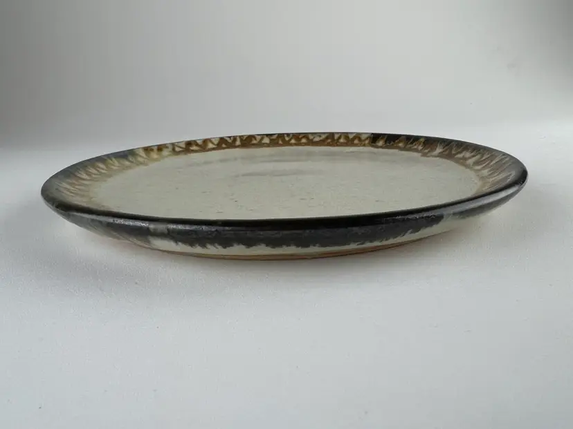 The Charlie B Gallery of Carson City, Nevada is offering this studio pottery plate or tray. This would be perfect to hold your jewelry or whatever you want. This plate is signed with initials as shown and was found in the Carson City, Nevada area. The edge has a nice decoration.