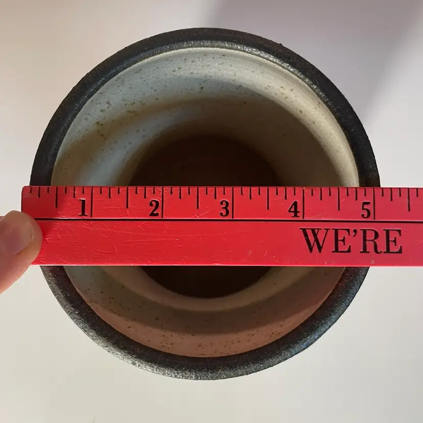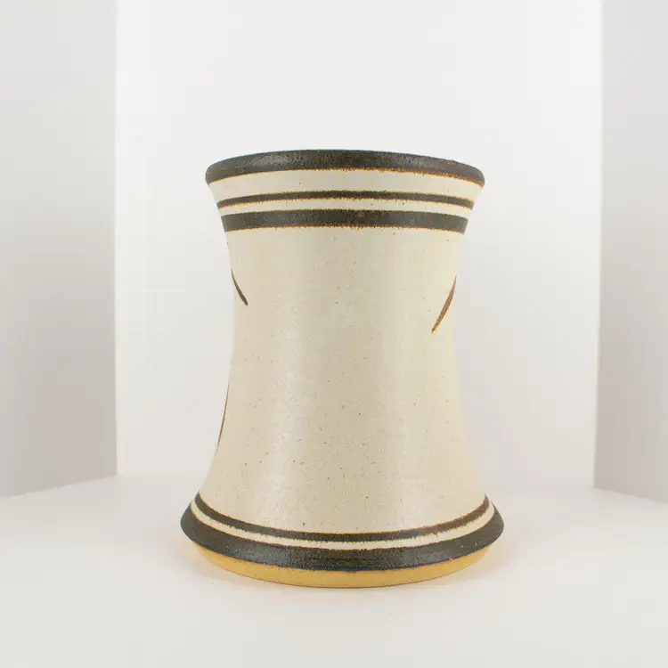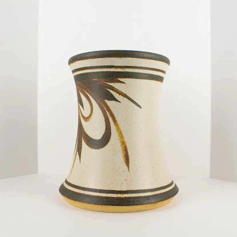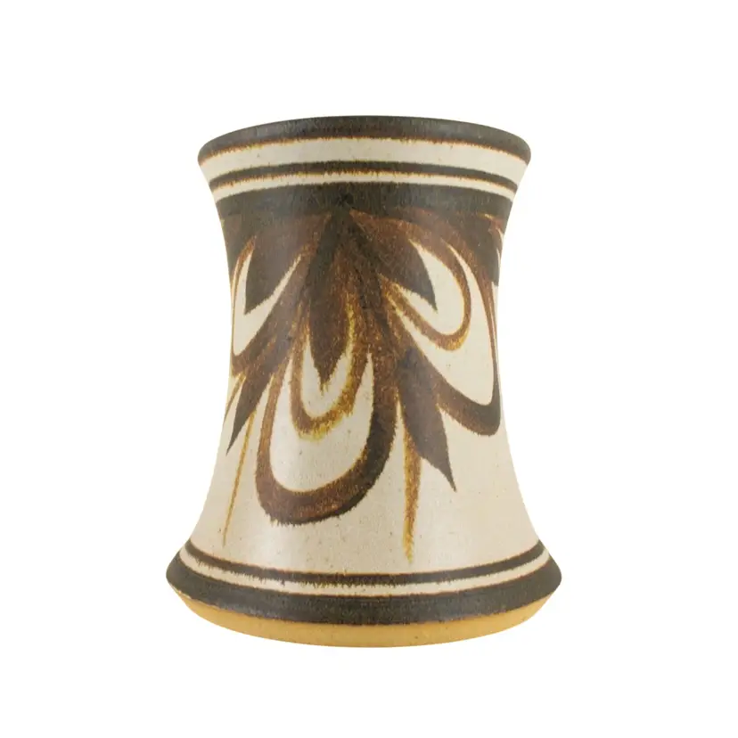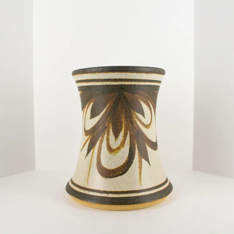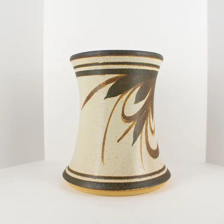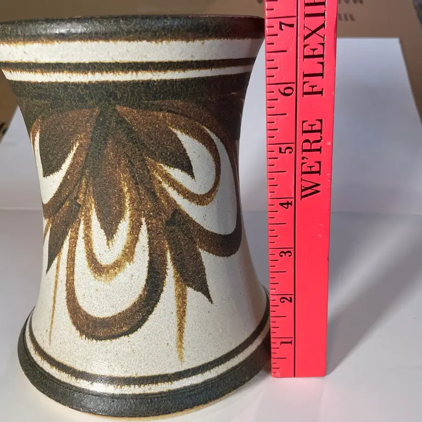 Maker: signed Brown Signed (Y/N): Y Country of Origin: unknown Time Period of Manufacture: 1970s-1990s Style / Technique: studio pottery, ash glaze Measurements: 7.25 inches tall, 4.5 inches opening diameter