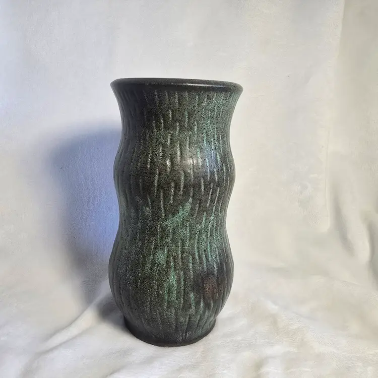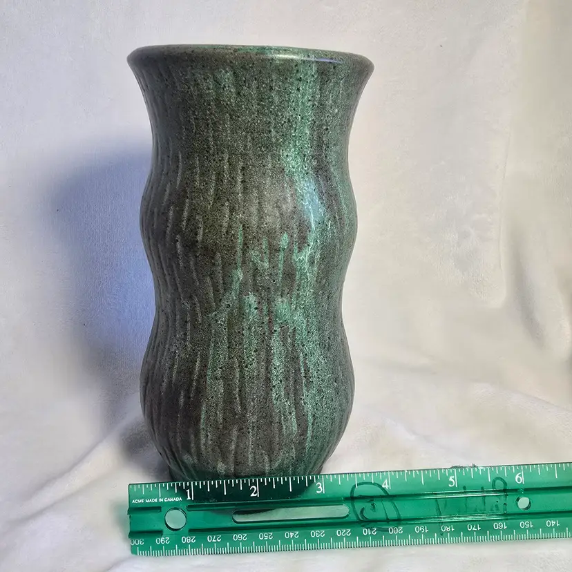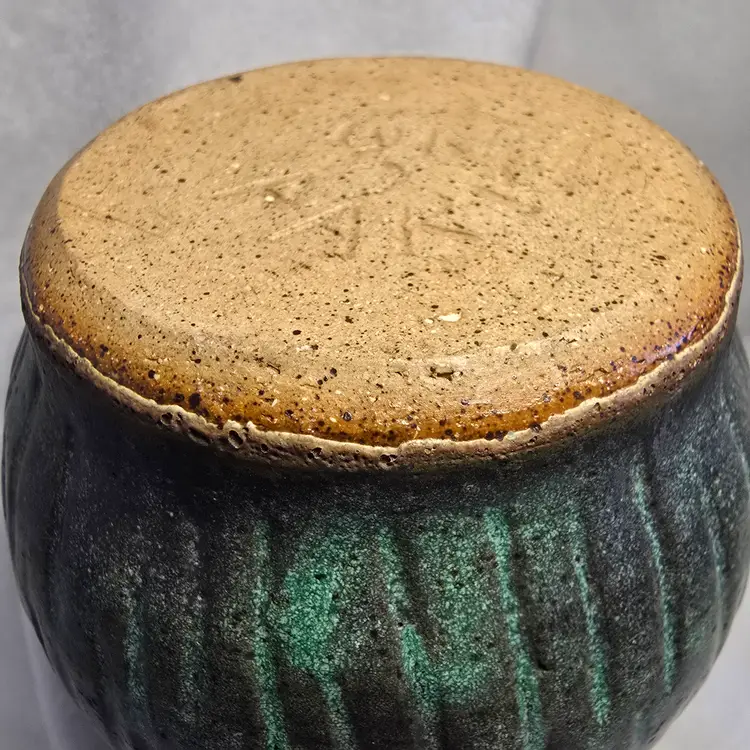 #StudioPottery #HandmadeVase #VintageCeramics #RusticDecor #GreenGlaze #StonewareVase #ArtisanPottery #OrganicModern #CollectibleCeramics
