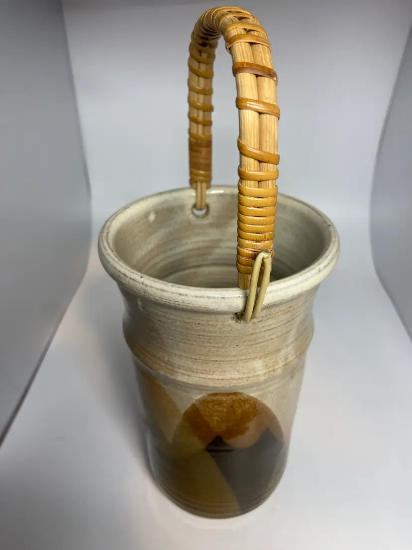 9.5" Tall with Handle - Vase has a slight crack near upper rim - See photos as they are part of the description.