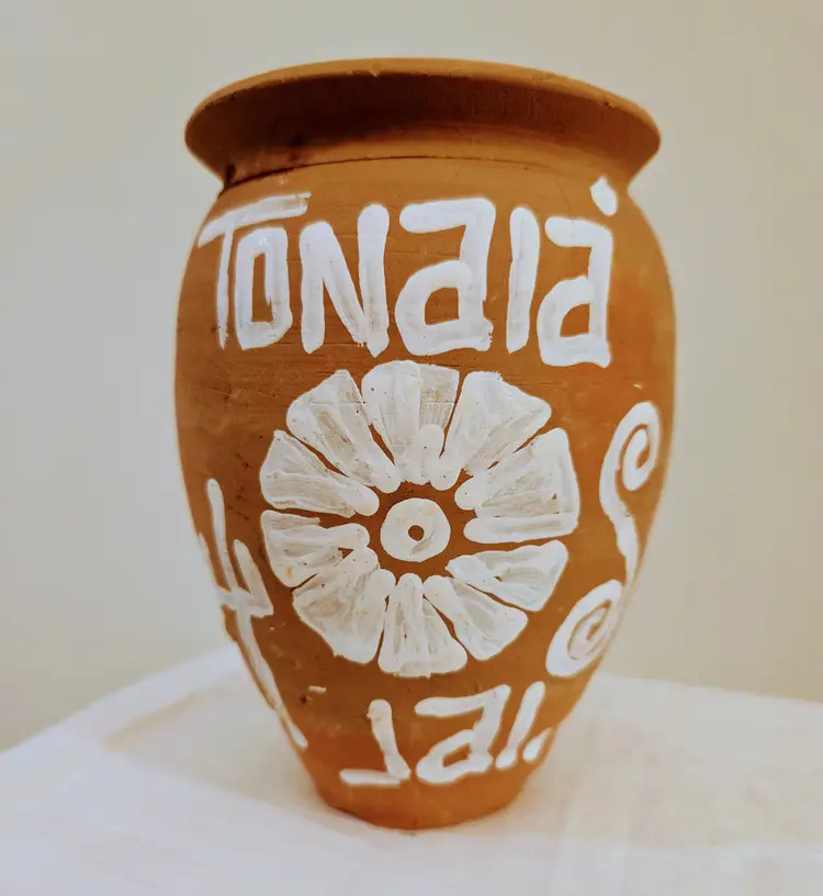 This vintage style Tonalá Mexican pottery vase is a handmade piece that reflects the rich cultural heritage of Mexico. Crafted in Mexico, this unique vase showcases traditional Mexican design and craftsmanship, making it a valuable collectible for those interested in Latin American cultures and ethnicities. The intricate patterns and vibrant colors characteristic of Tonalá pottery add a touch of authenticity and history to any space.