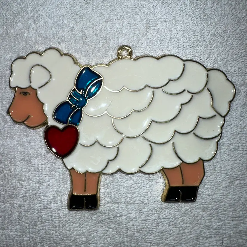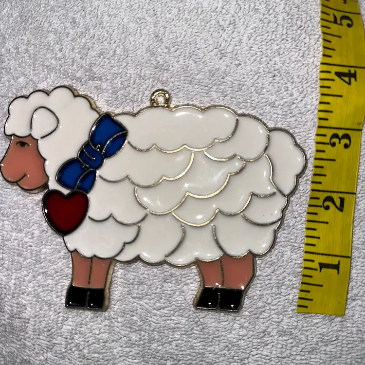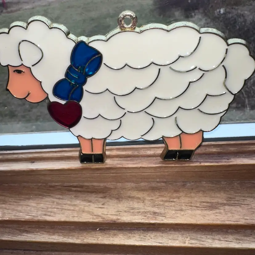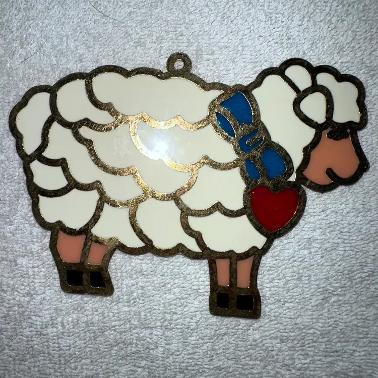 Vintage Suncatcher SHEEP Ornament Stained Glass Acrylic Metal. Excellent Condition Without Cracks Or Issues. Smoke Free Home. #suncatcher #vintagesuncatcher #sheep #lamb #vintage