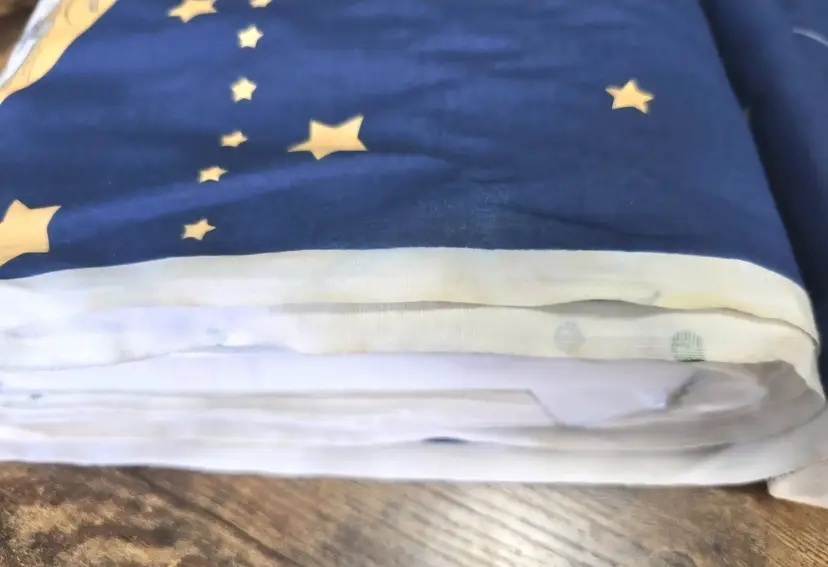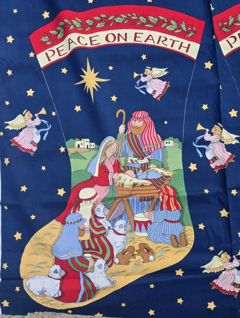 This is new-old stock. It is 32 feet 8 inches long and 44.5 inches wide. One edge has a section of minor discoloration on the white part only (see last pic), but is otherwise in excellent condition with vibrant colors. Please refer to pictures.
