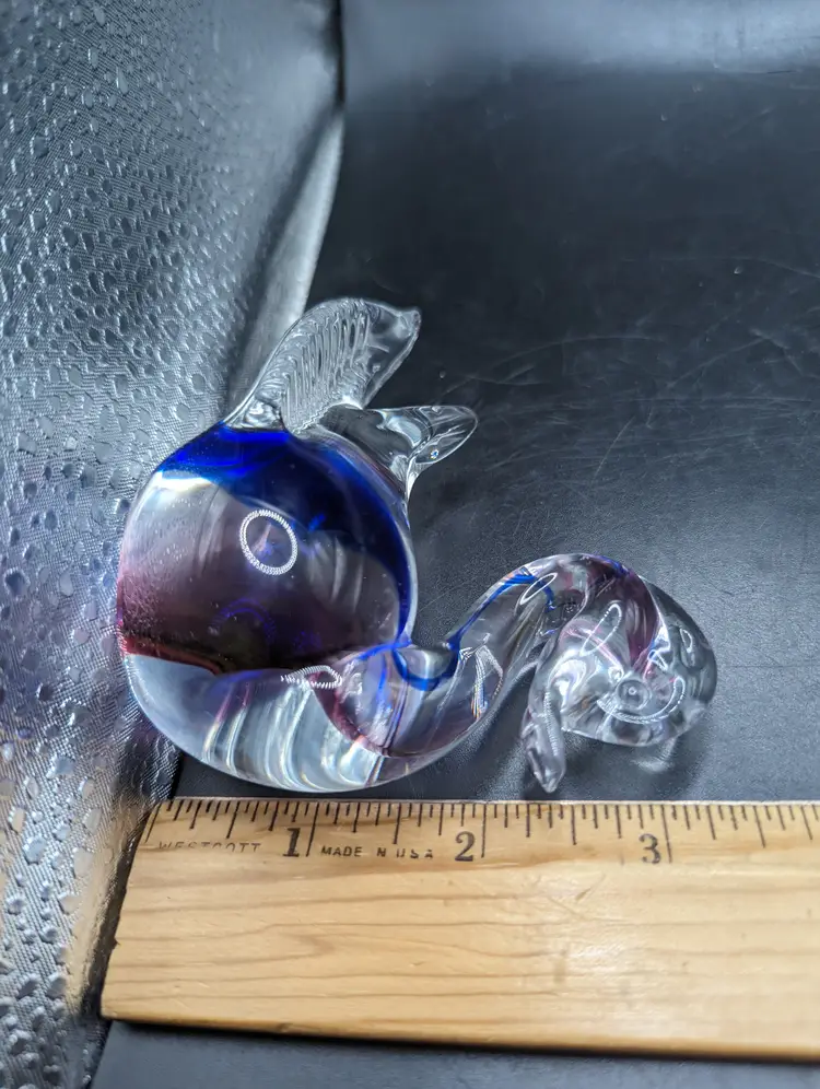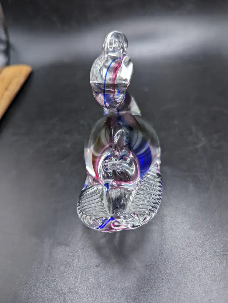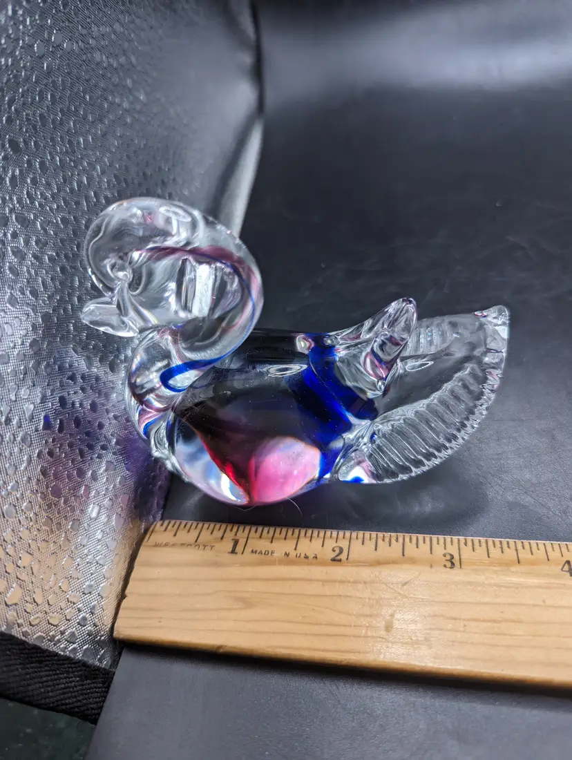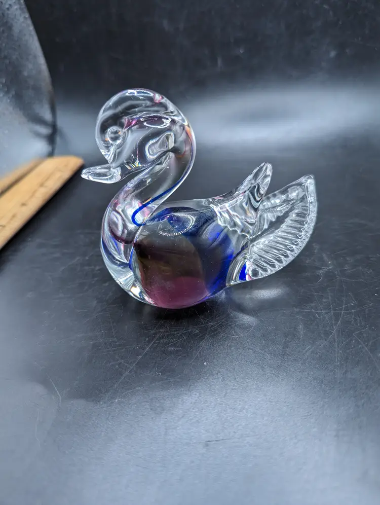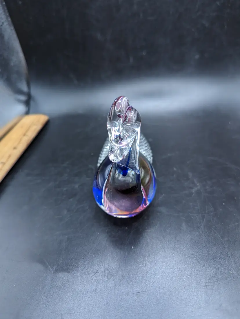 This is a lovely Vintage SWAN Bird Clear Glass Art Deco Blue and Pink Infusion Figurine Paperweight 3.25"T. No chips or cracks. Please see all pictures for condition and measurements.