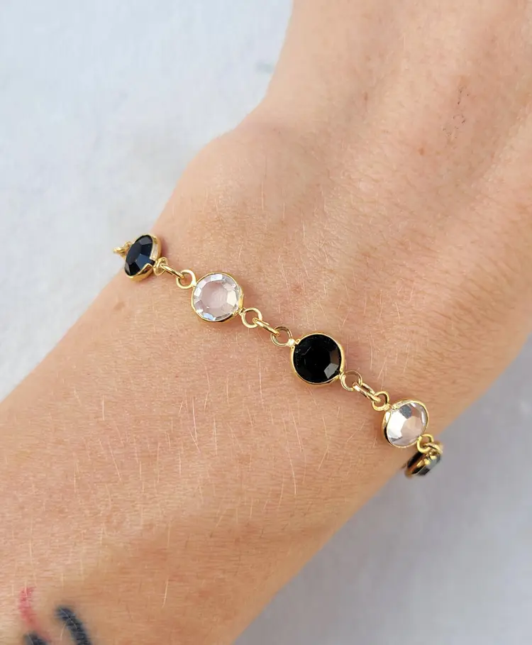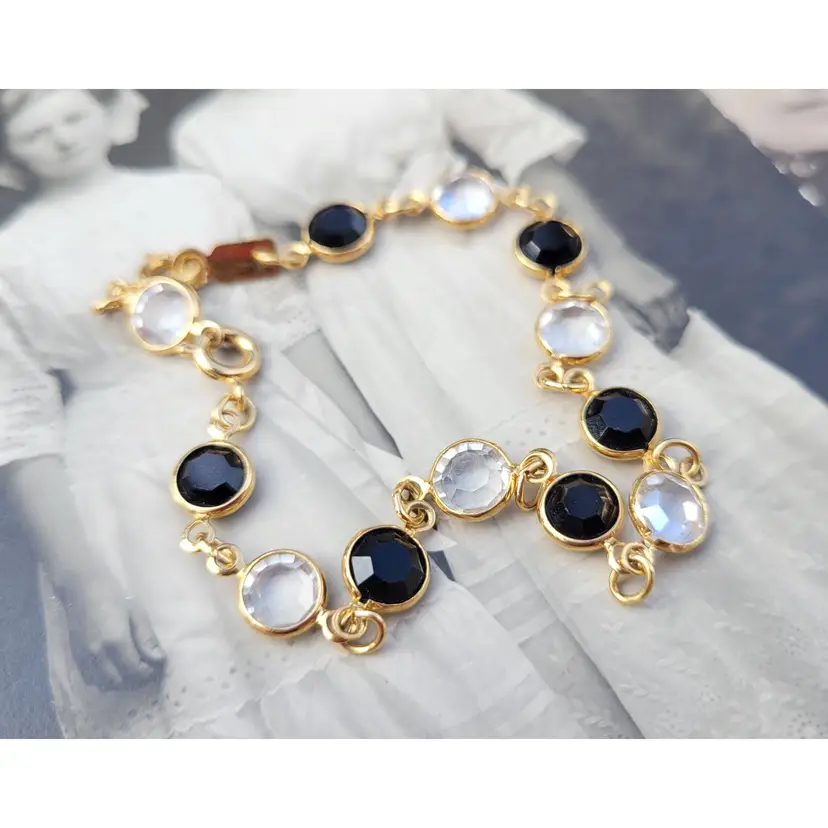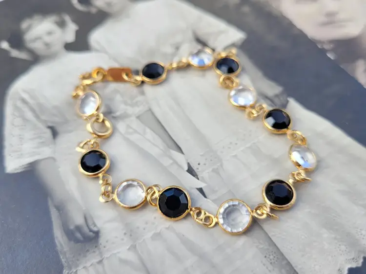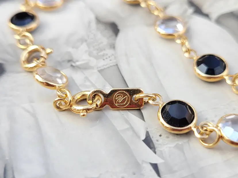 Beautiful signed genuine Swarovski black crystal bracelet from an estate, circa 1990s. It has an extender making it adjustable from 7" to 7.75." This is in good condition, please see pictures for details and measurements.