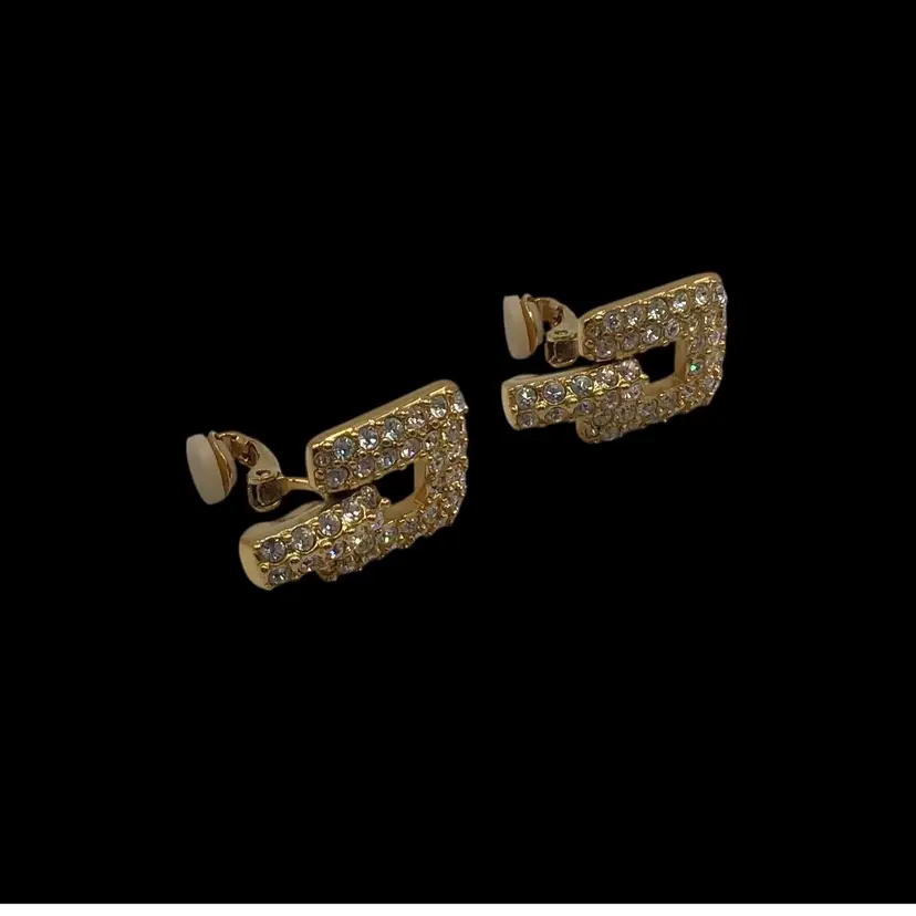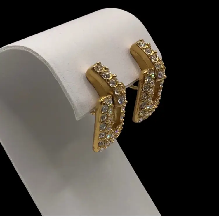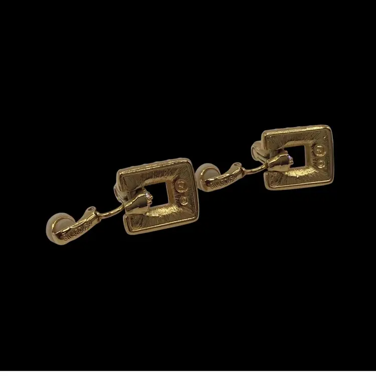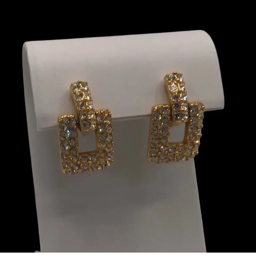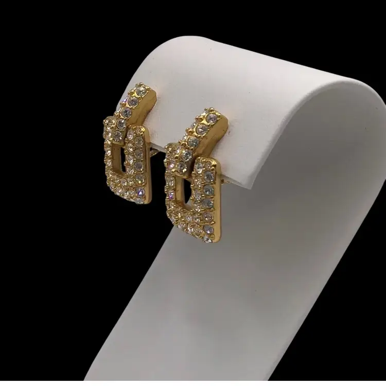 Gold tone pave set clear crystals, door knocker style clip on. Gold plated wonderful condition. Marked with the Swarovski swan & copyright symbol. #028