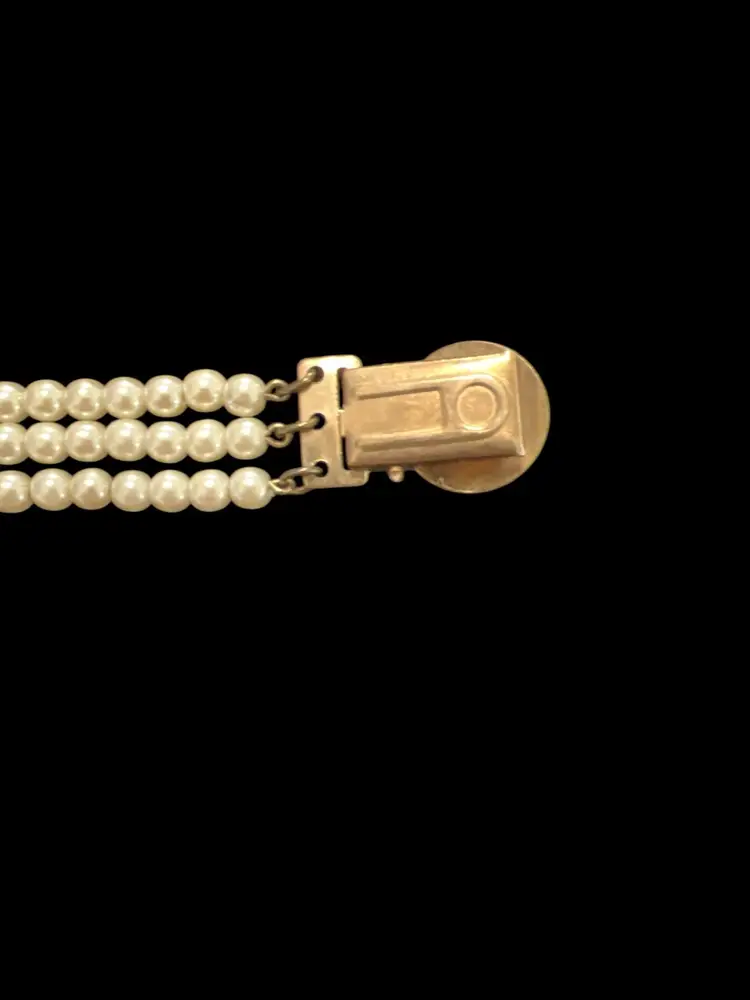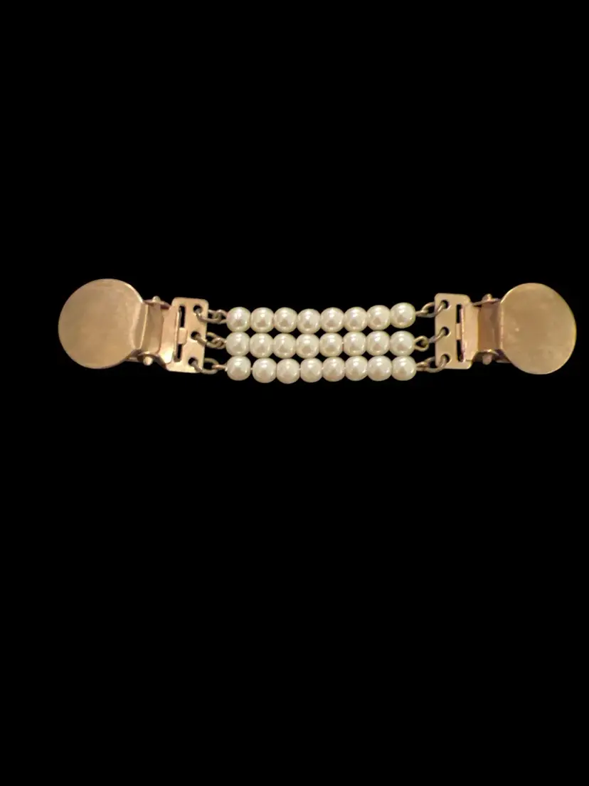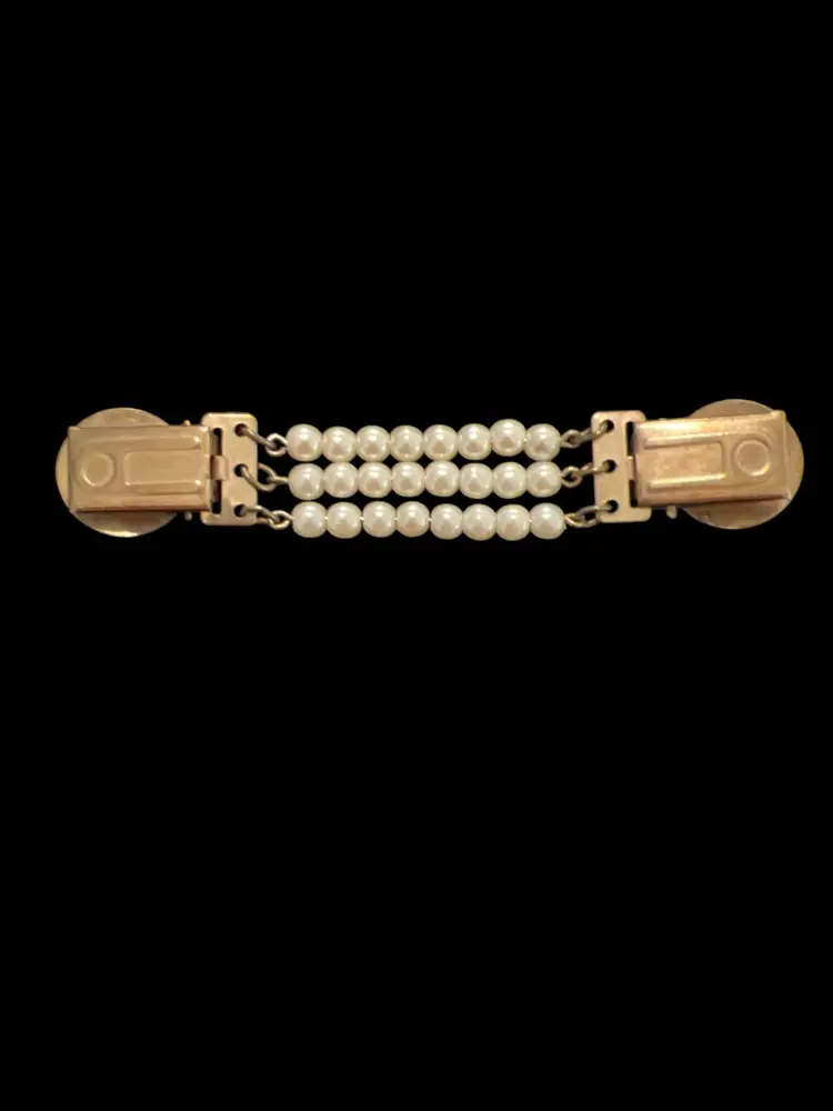 Vintage Sweater Clip 3 Strand Faux Pearl Gold Tone #of-c
