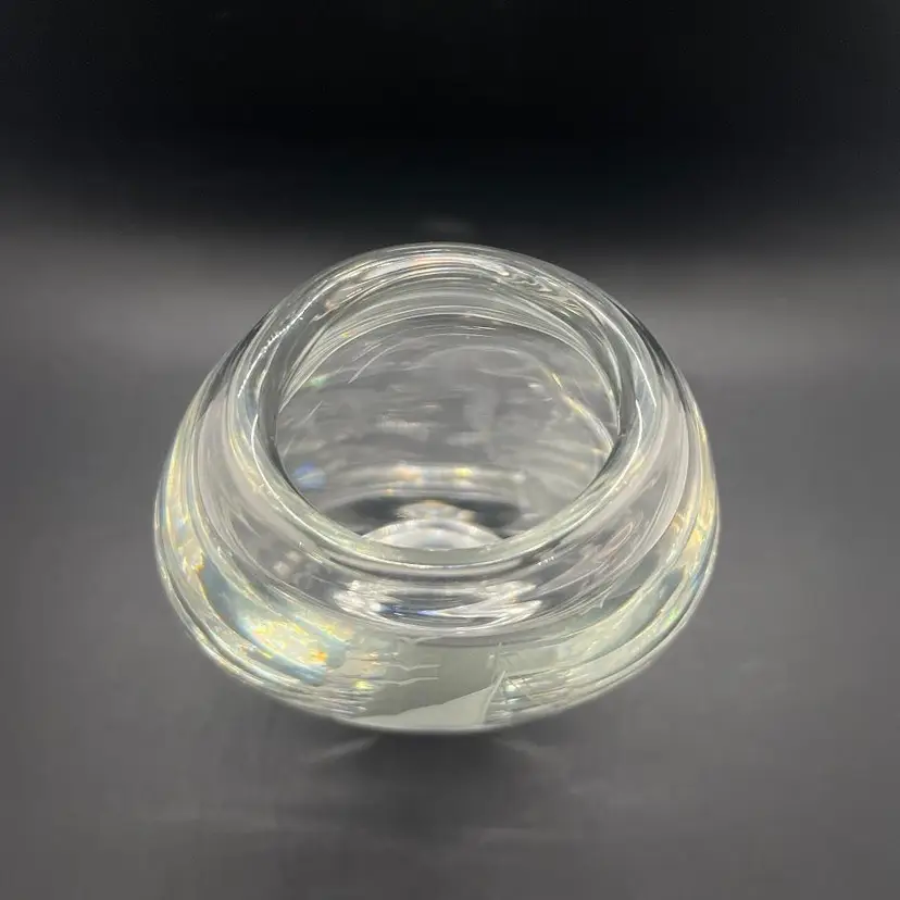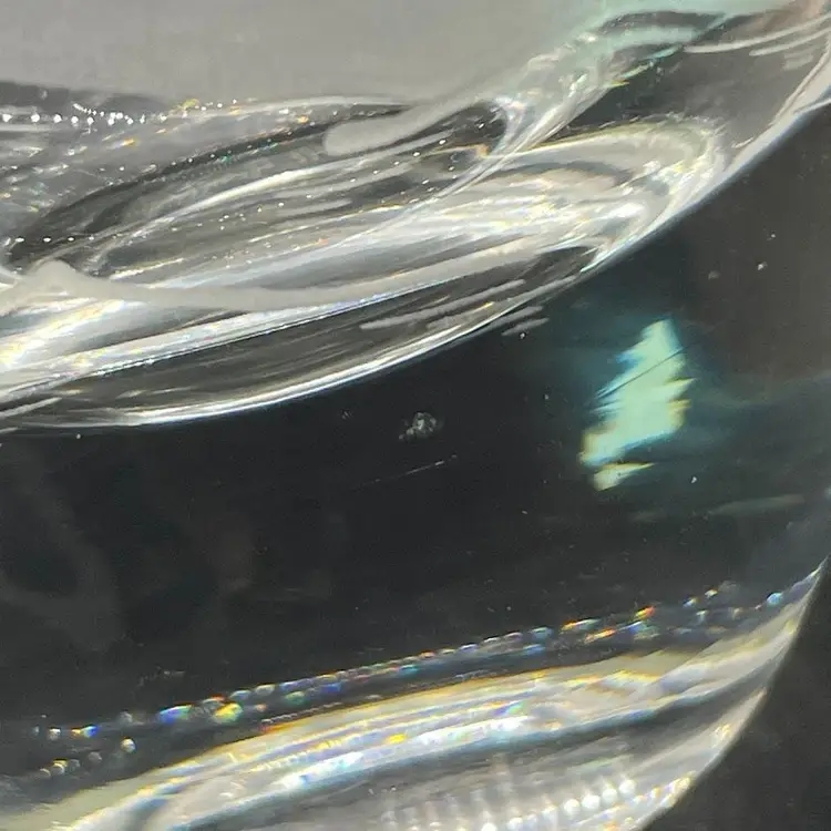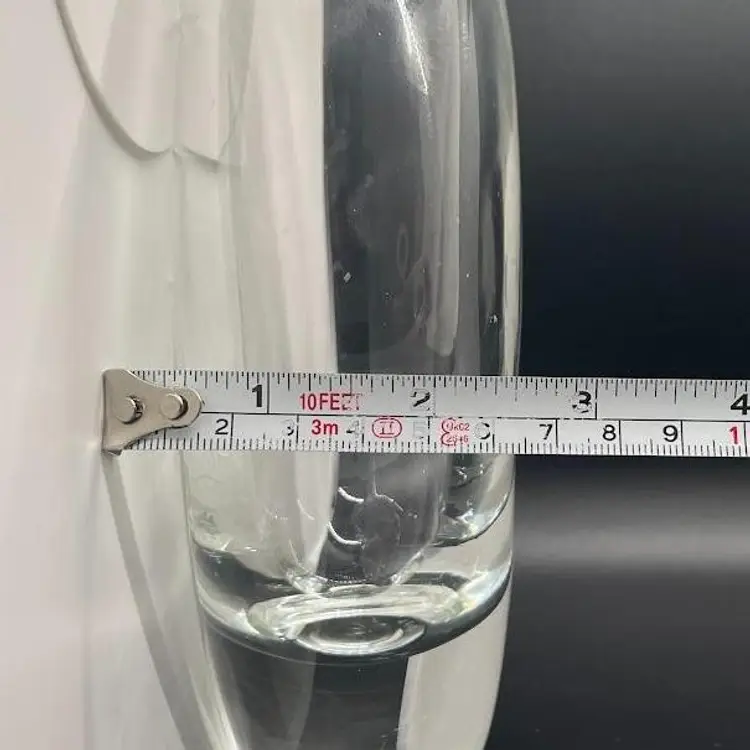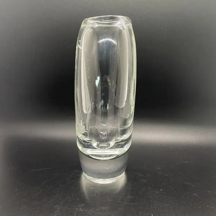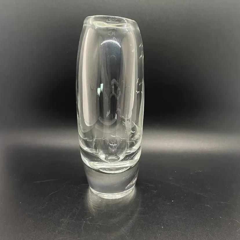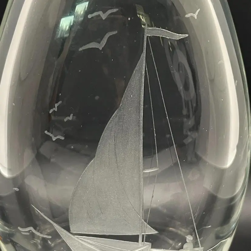 Vintage Swedish Crystal Vase with Beautiful Hand Cut/ Etched/ Engraved Sailboat Ocean Scene. Signed by Al. Arnits - an artist from Washington. No cracks. Couple small flea bite chips on the bottom edge. Small bruise/scuff under the waves. Couple small flea bite chips along the edges of the etched design - not sure if these are the result of the etching process or not. Approx. 4 to 6 small bruises/scuffs on the sides and back. Shows signs of wear with light scuffing and scratching.
